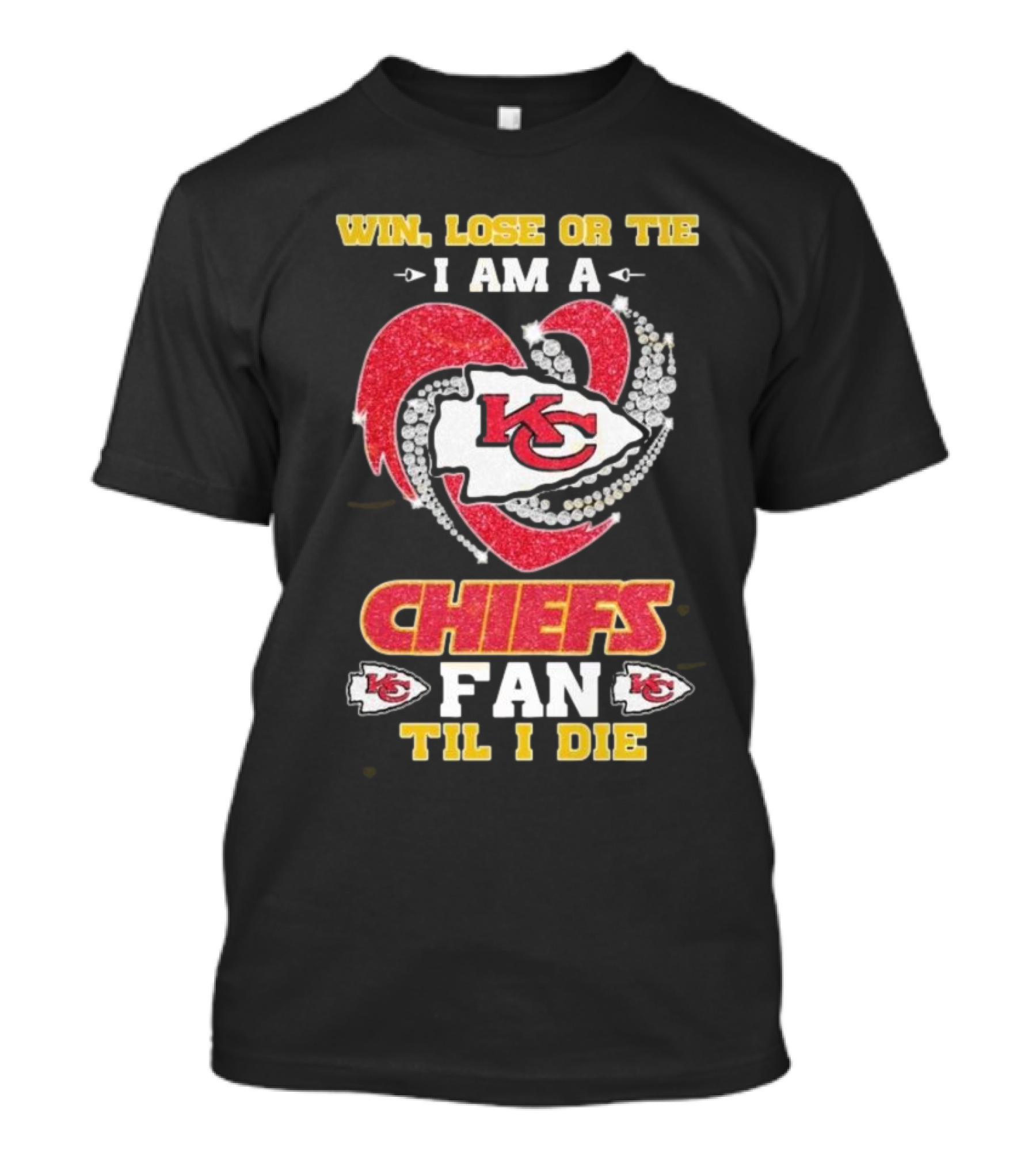 Win, Lose Or Tie I Am A Chiefs Fan Til I Die KC Diamond Heart T-Shirt