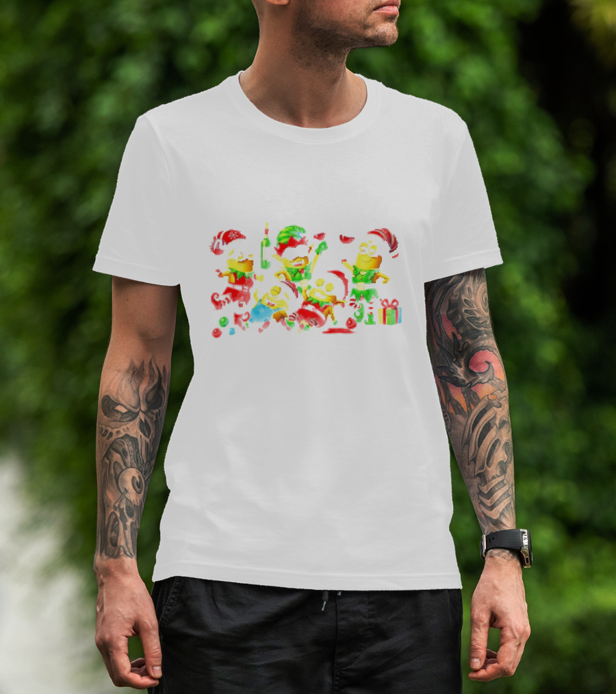 The Minion Christmas Merry Celebration with Santa Hats and Wine T-shirt is designed for everyday wear and a consistent fit. Fabric is pre-shrunk ring-spun cotton with durable stitching. See the size chart below for exact measurements.