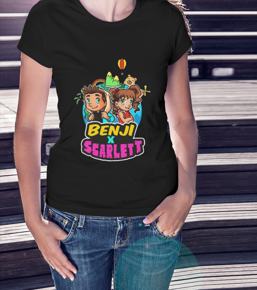 Benji X Scarlett Adventure Cartoon Style Balloon Island Teddy Bear T-Shirt