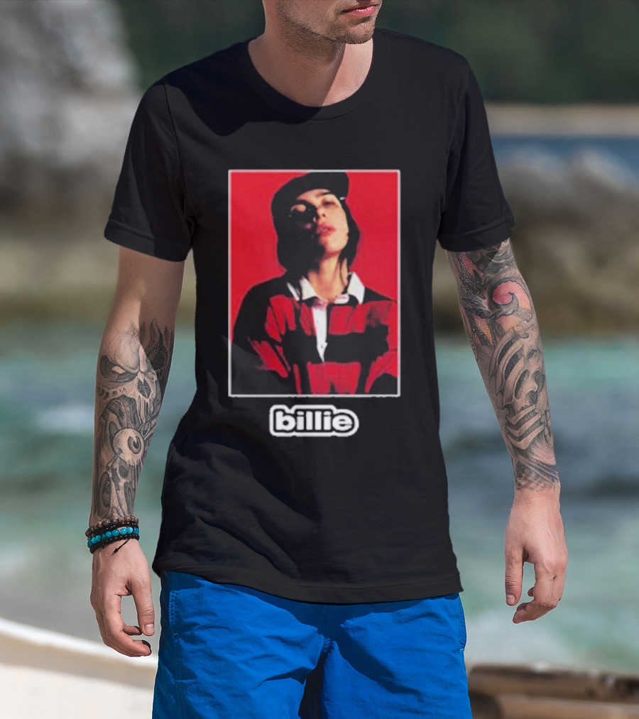 Billie Eilish Red Black Striped Shirt Photo Billie T-Shirt