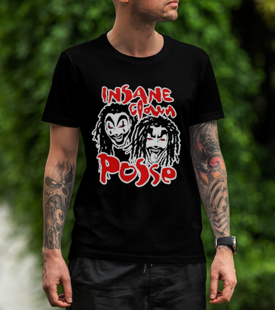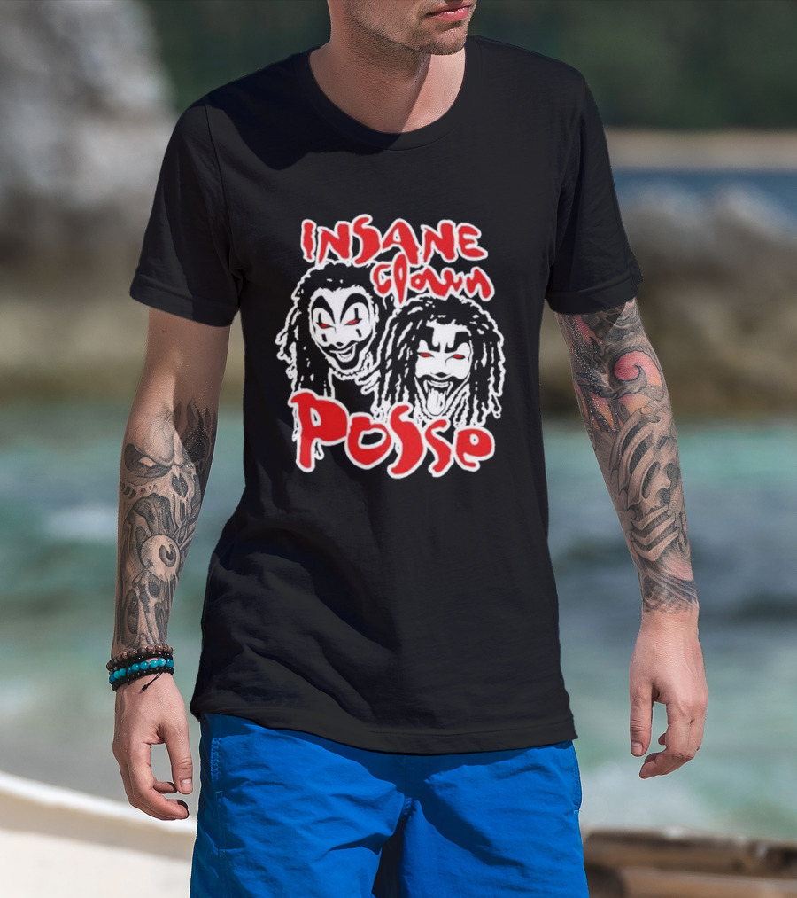 The Insane Clown Posse Faces Red and White T-shirt is designed for everyday wear and a consistent fit. Fabric is pre-shrunk ring-spun cotton with durable stitching. See the size chart below for exact measurements.