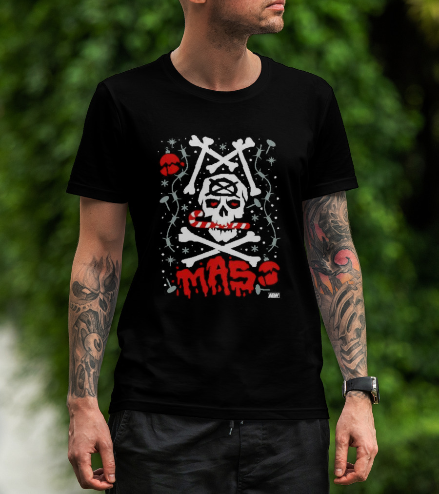 Jon Moxley Xmas Skull Candy Cane Holiday AEW T-Shirt