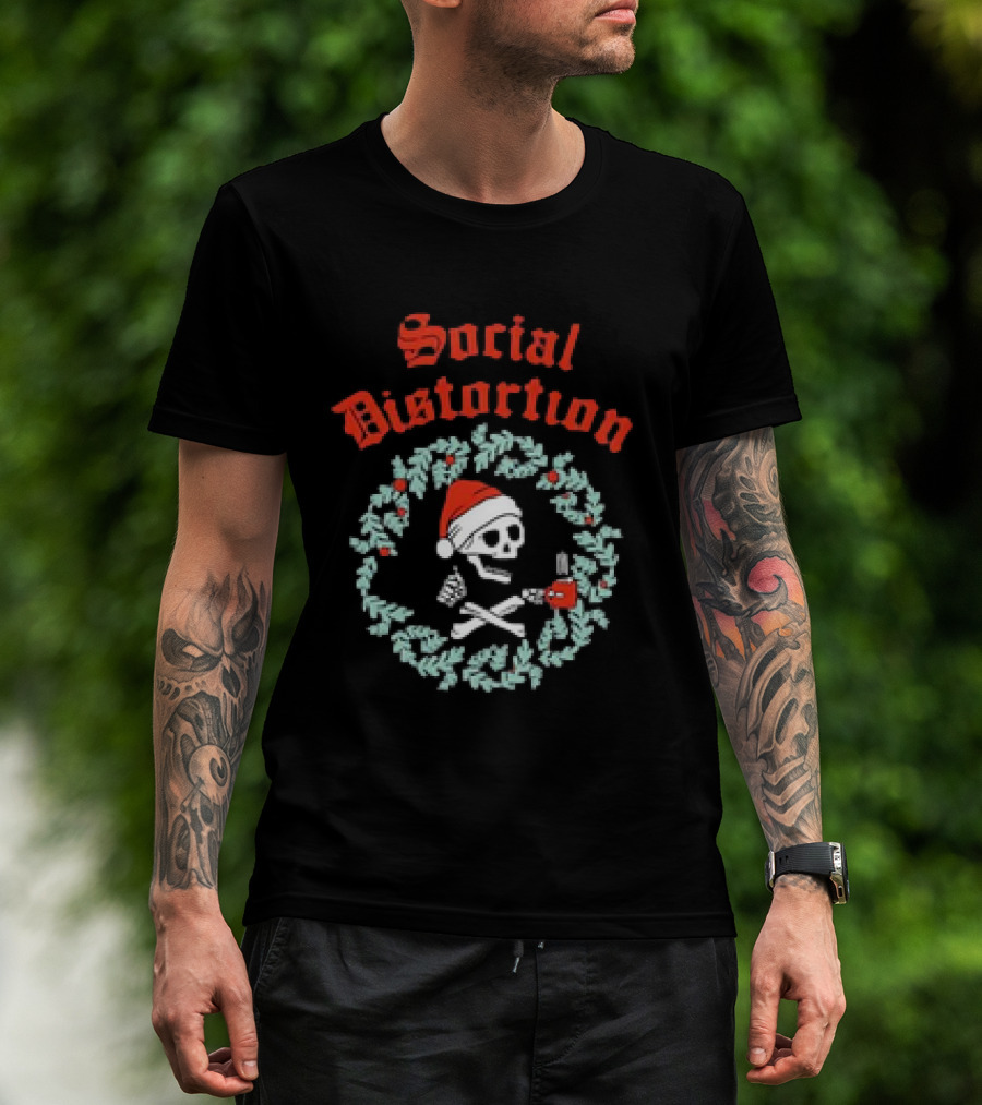 Social Distortion Skelly Wreath Santa Christmas Skeleton T-Shirt