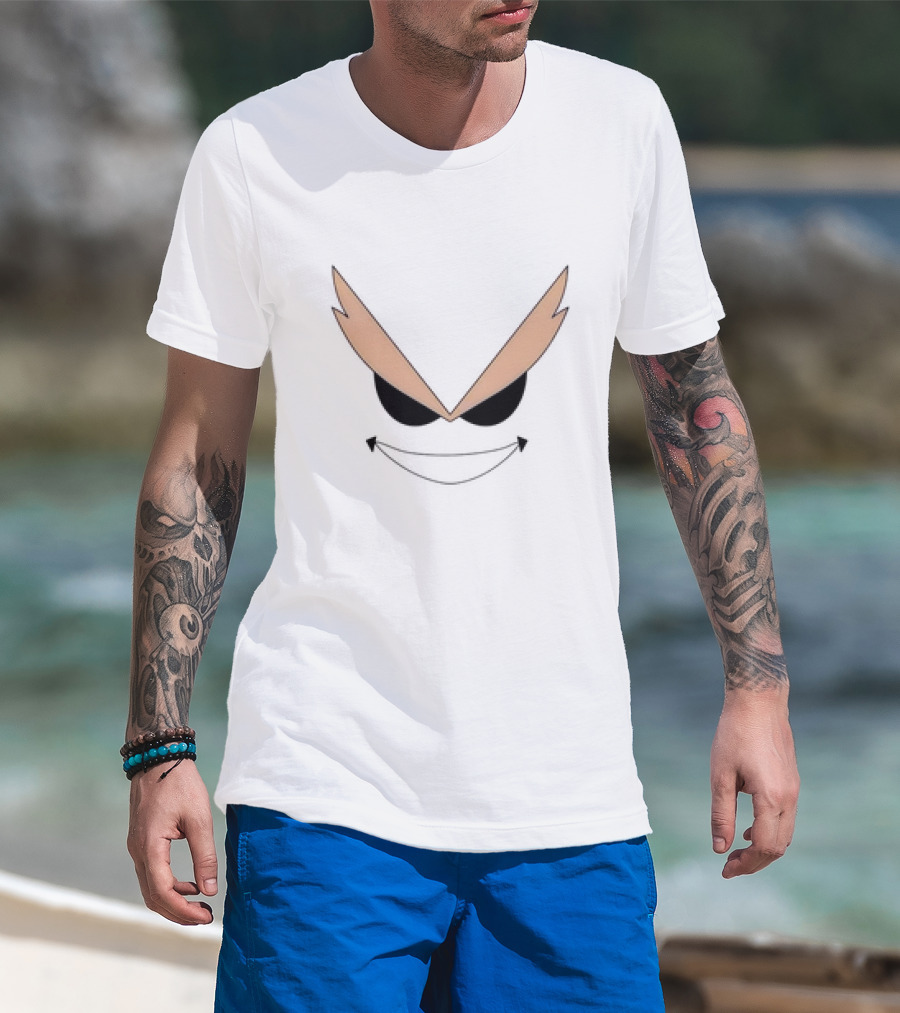 The All Might Face Non-No Symbolic Eyes and Smile T-shirt is designed for everyday wear and a consistent fit. Fabric is pre-shrunk ring-spun cotton with durable stitching. See the size chart below for exact measurements.