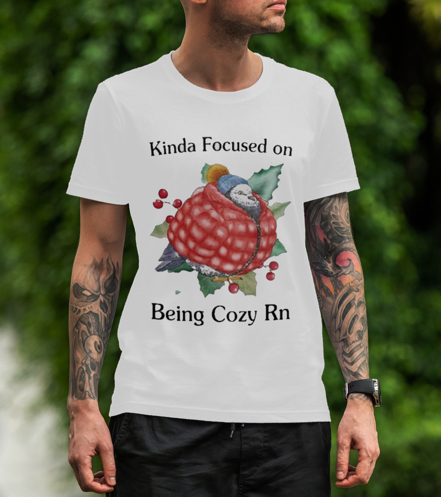 The Kinda Focused On Being Cozy Rn Pigeon Wrapped in Red Jacket Winter T-shirt is designed for everyday wear and a consistent fit. Fabric is pre-shrunk ring-spun cotton with durable stitching. See the size chart below for exact measurements.