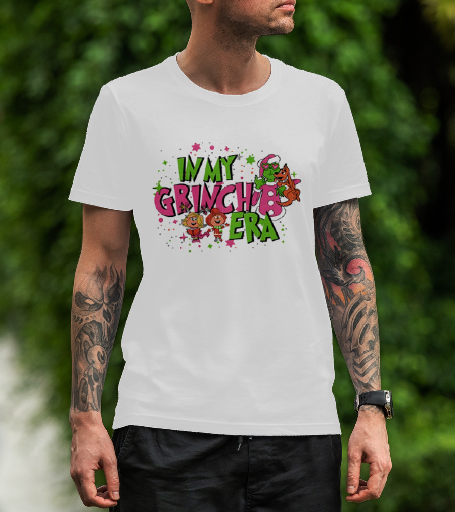 In My Grinch Era Pink Christmas With Cartoon Characters T-Shirt