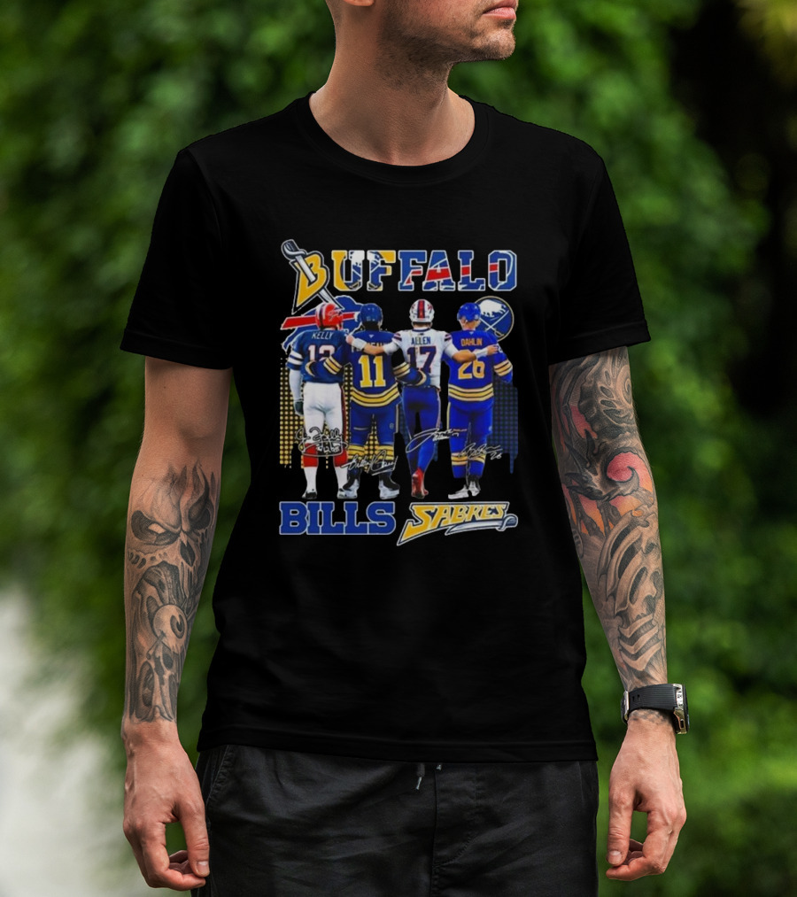 Buffalo Bills Sabres Kelly Perreault Allen Dahlin Signatures T-Shirt