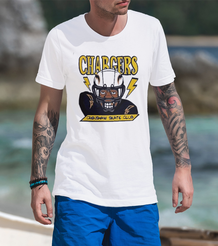 Chargers Crenshaw Skate Club Football Helmet Lightning Player T-Shirt