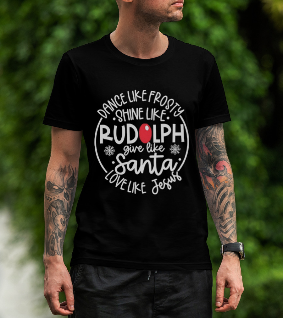 Dance Like Frosty Shine Like Rudolph Give Like Santa Love Like Jesus Christmas Holiday T-Shirt