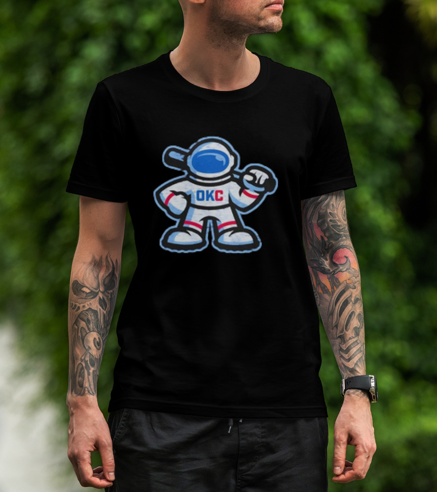 OKC Comets Astronaut Baseball Mascot With Bat T-Shirt