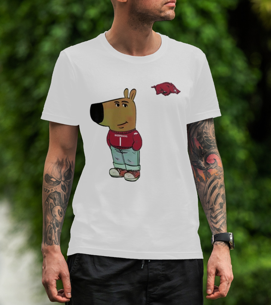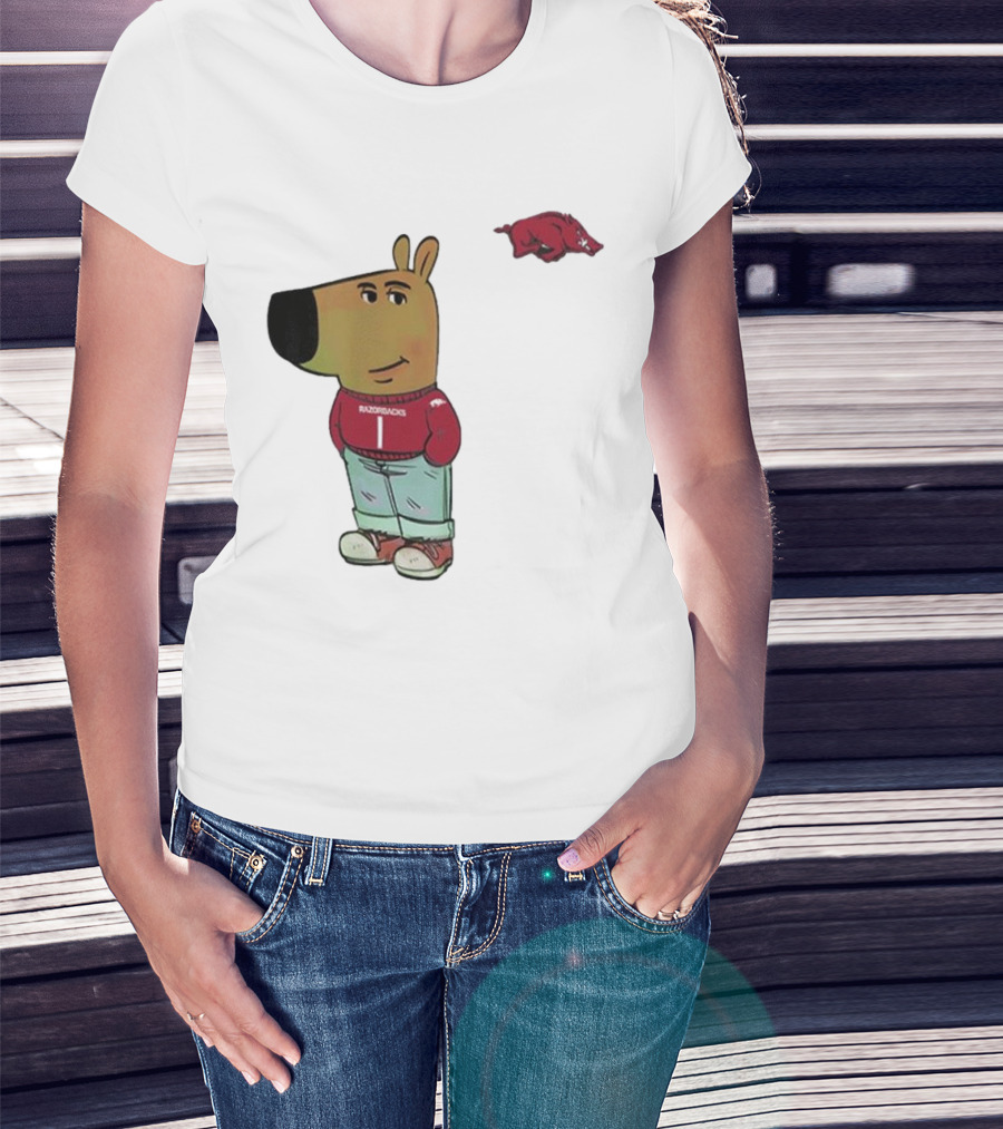 Arkansas Razorbacks Chill Guy Mascot With Cartoon Character In Red Sweater And Jeans T-Shirt