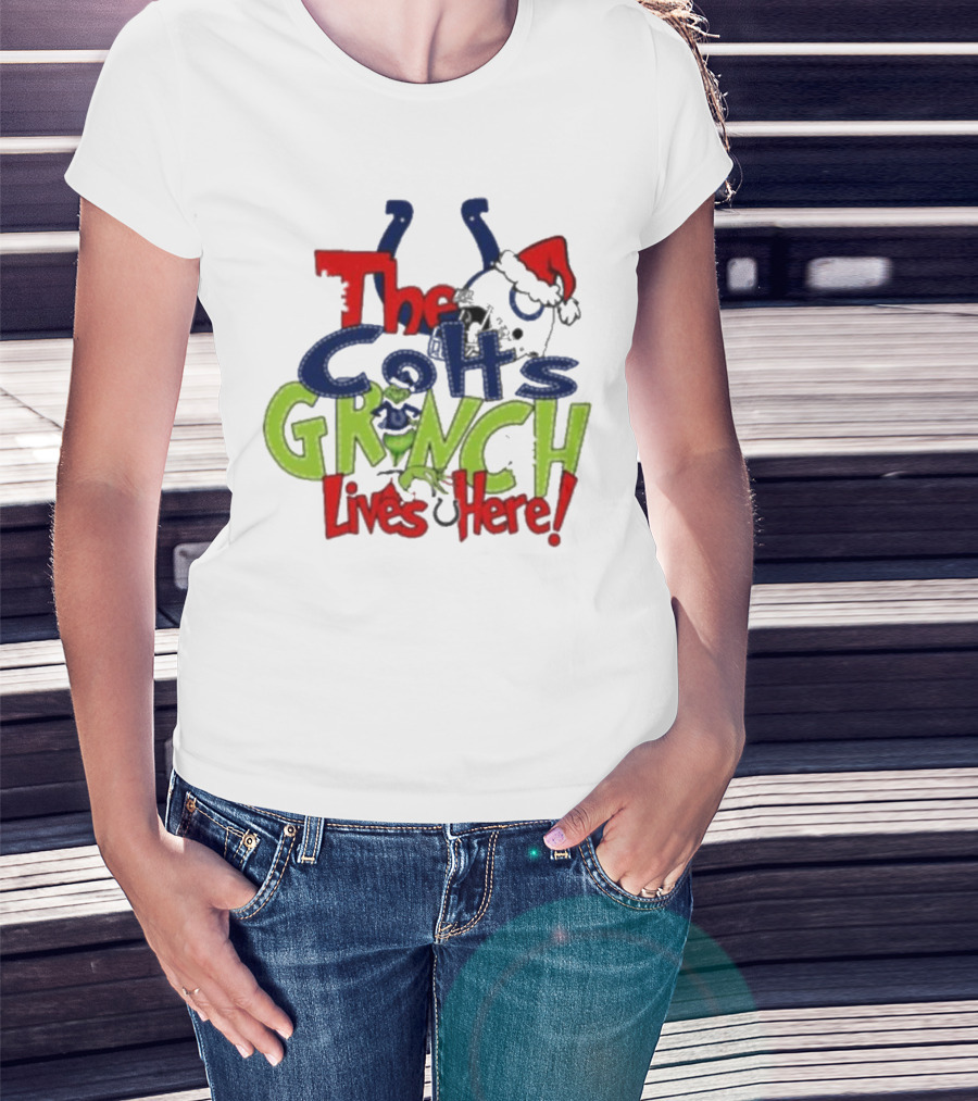 The Indianapolis Colts Grinch Lives Here Christmas Santa Hat T-Shirt