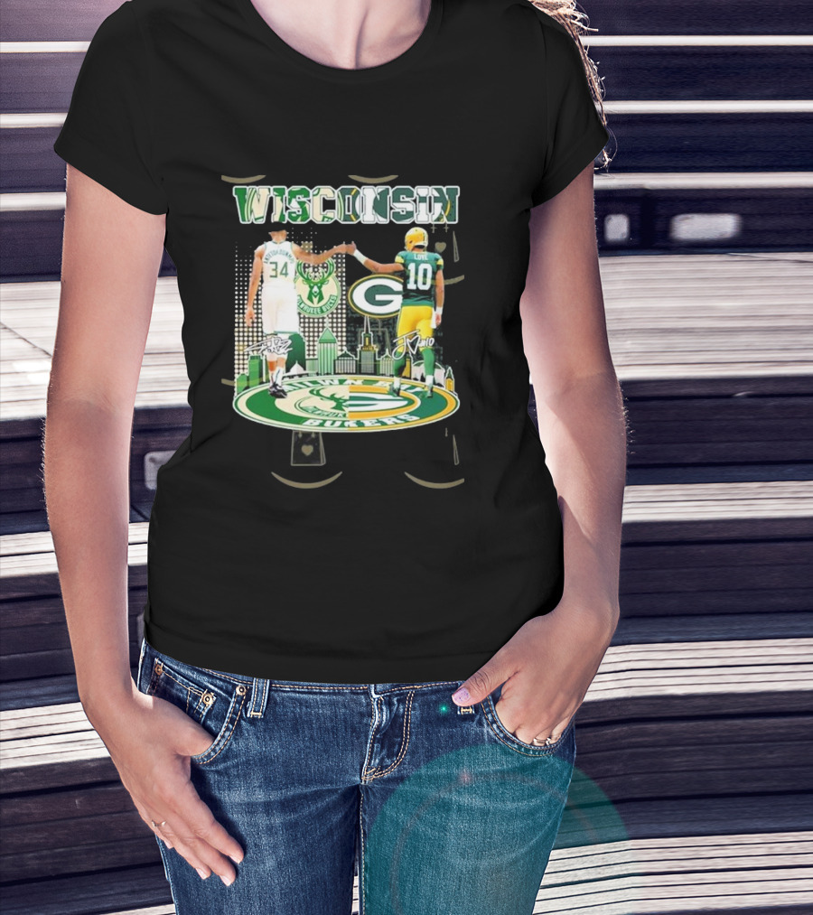 Wisconsin Milwaukee Bucks Green Bay Packers Iconic Duo Signature T-Shirt