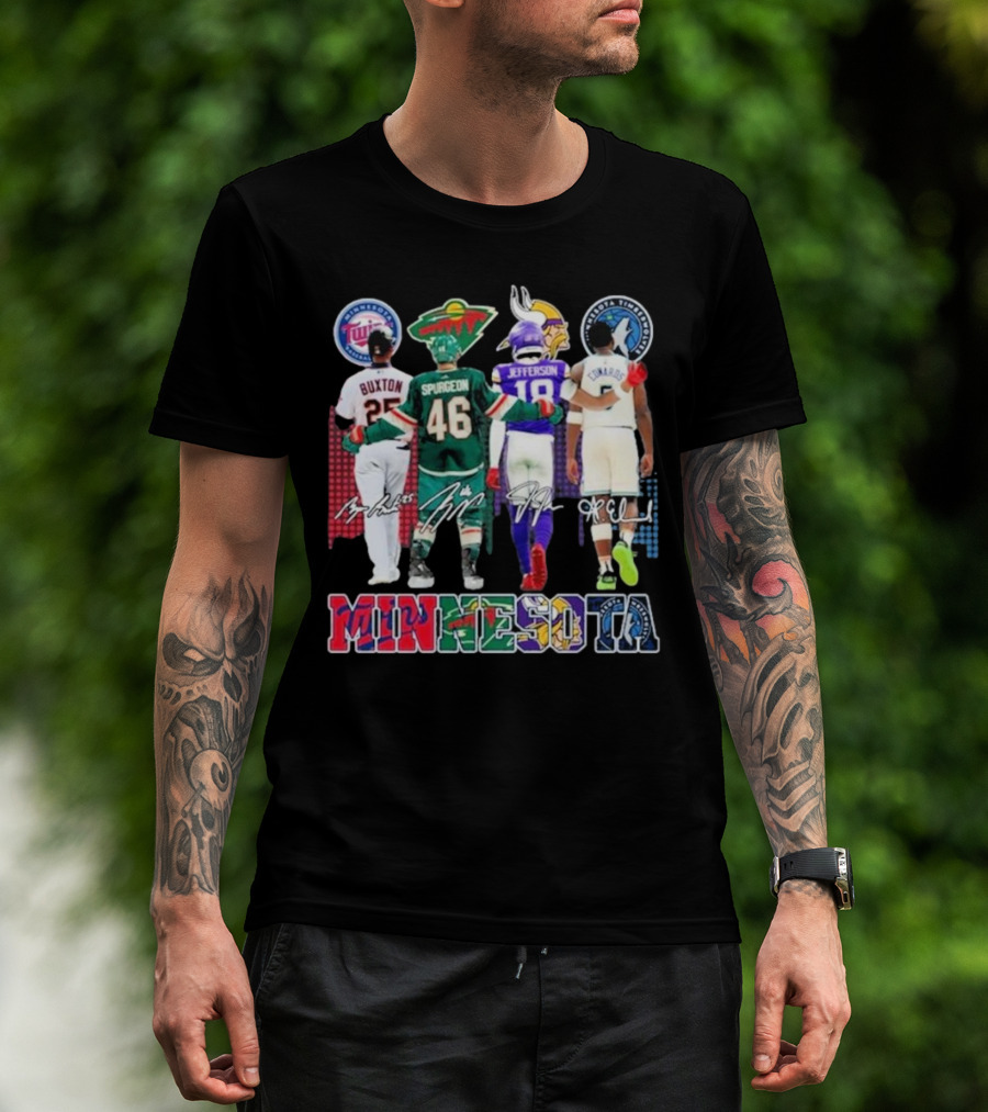 Minnesota Twins Buxton Minnesota Wild Spurgeon Minnesota Vikings Jefferson Minnesota Timberwolves Edwards Signature T-Shirt
