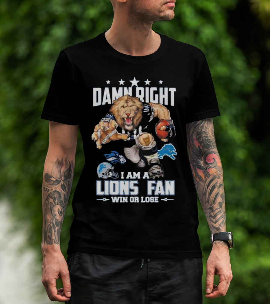 Damn Right I Am A Lions Fan Win Or Lose Football Roaring Pride T-Shirt