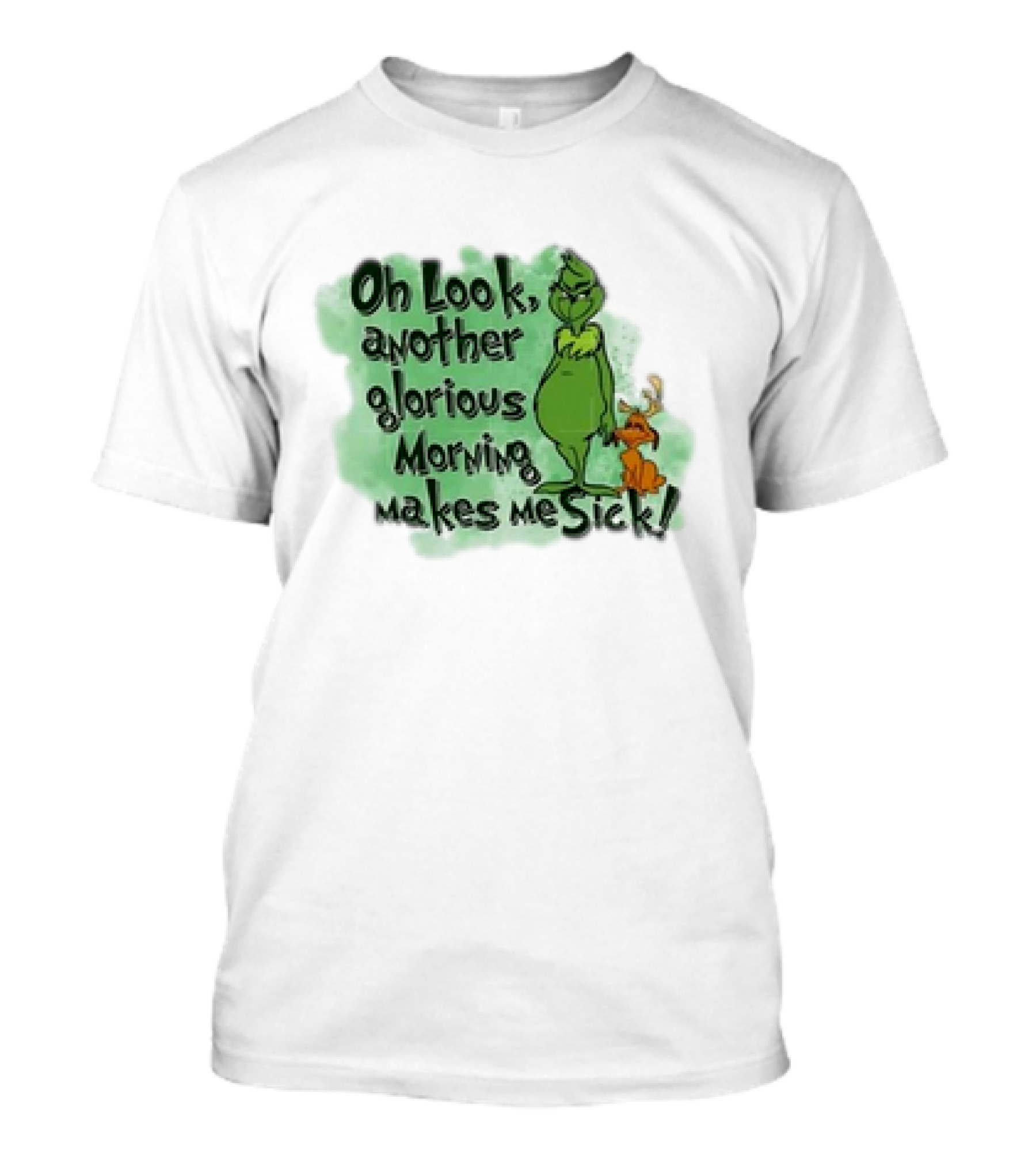 The Grinch On Look Another Glorious Morning Makes Me Sick T-shirt is designed for everyday wear and a consistent fit. Fabric is pre-shrunk ring-spun cotton with durable stitching. See the size chart below for exact measurements.
