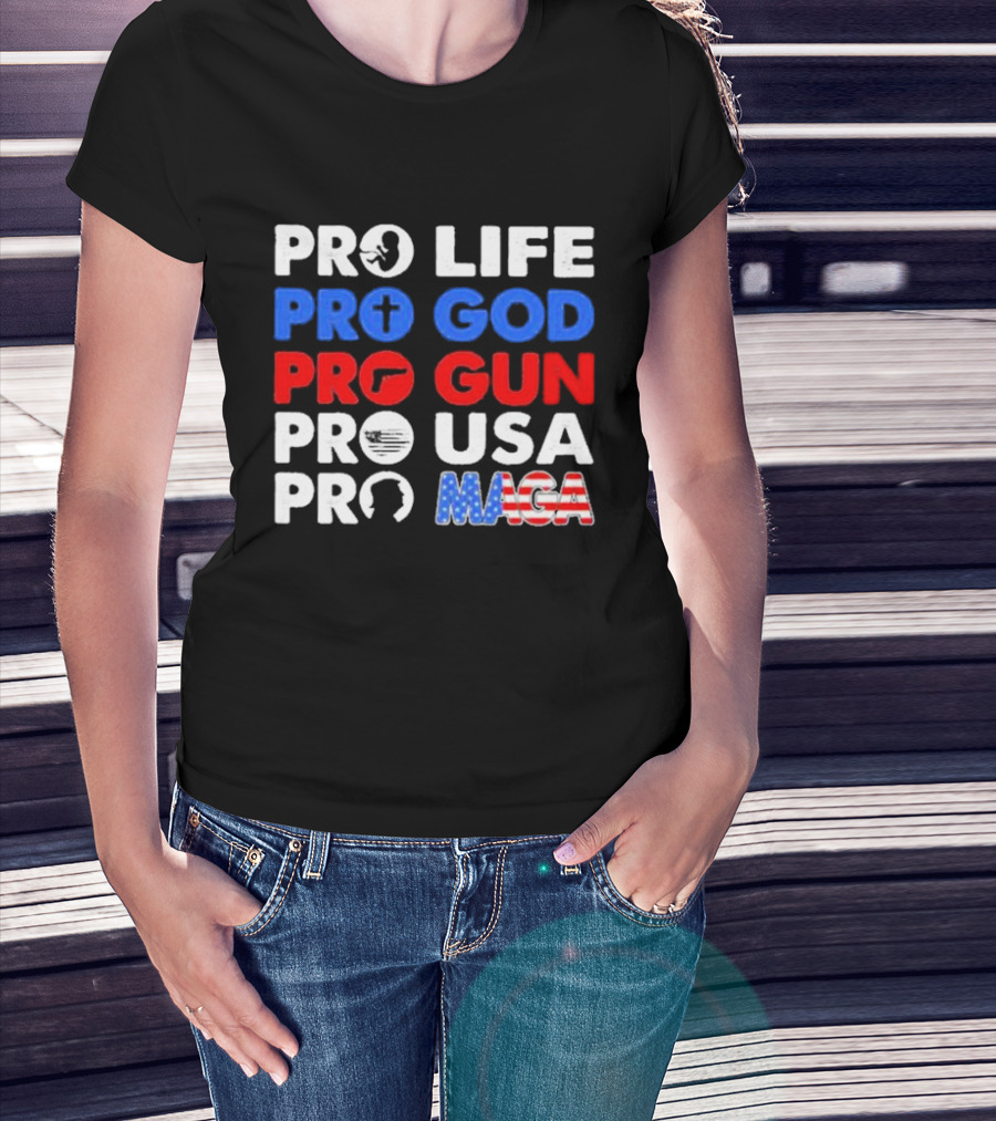 Pro Life Pro God Pro Gun Pro USA Pro MAGA With Icons T-Shirt