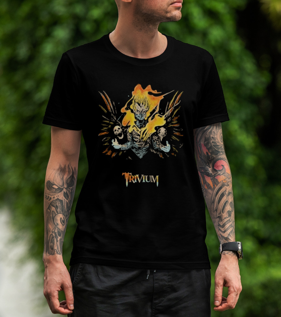 Trivium Blazing Figure With Skulls And Flaming Wings T-Shirt