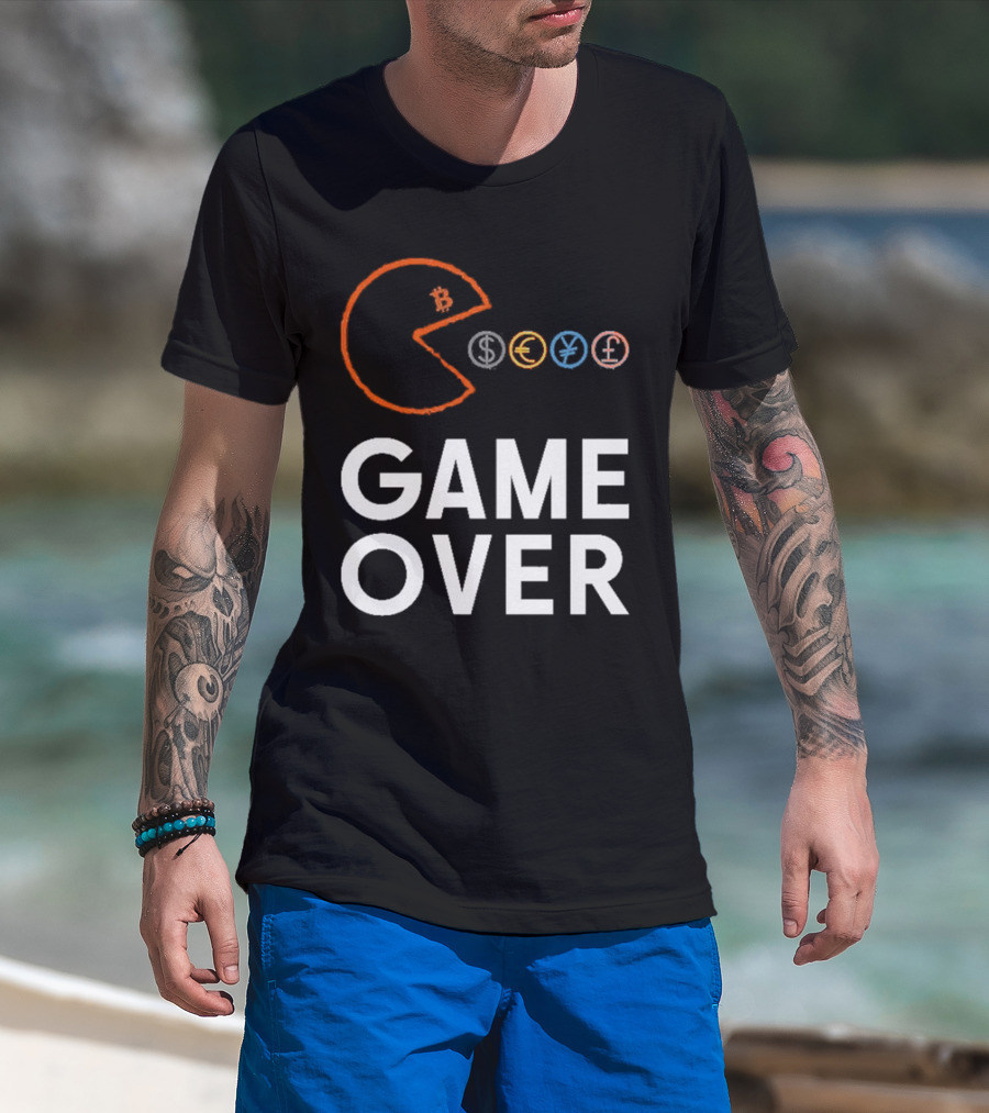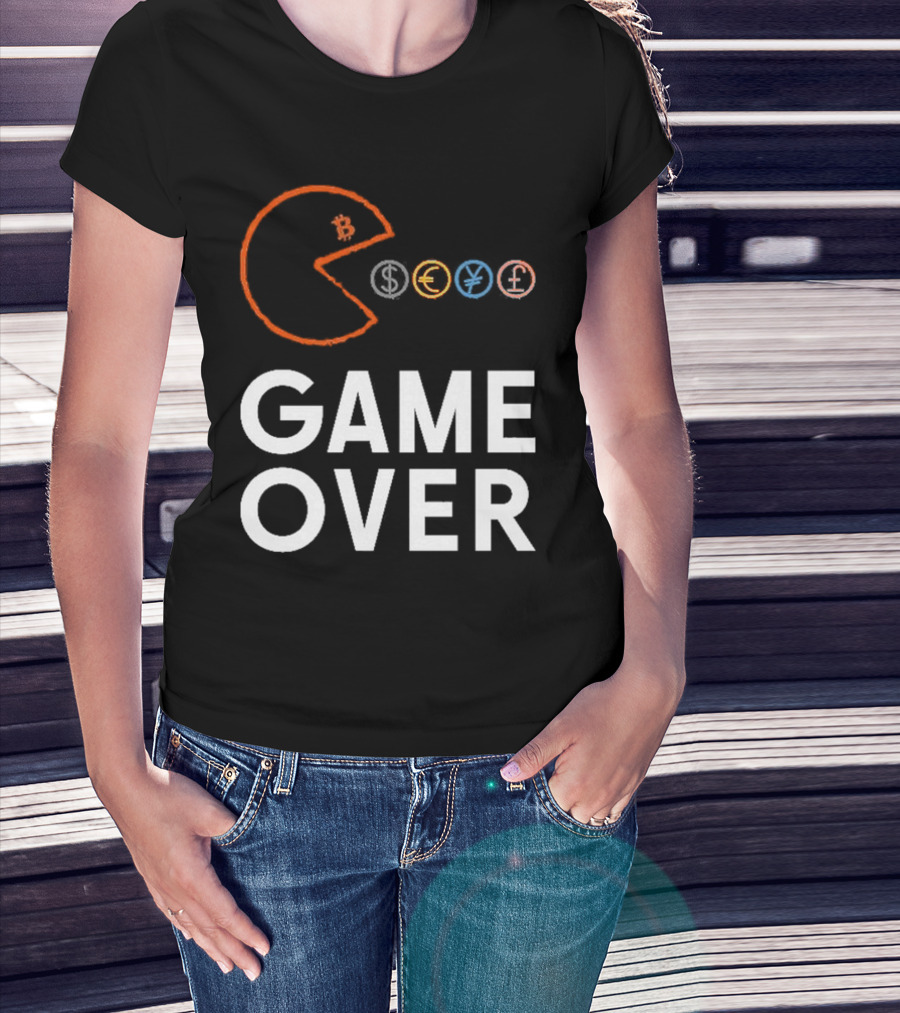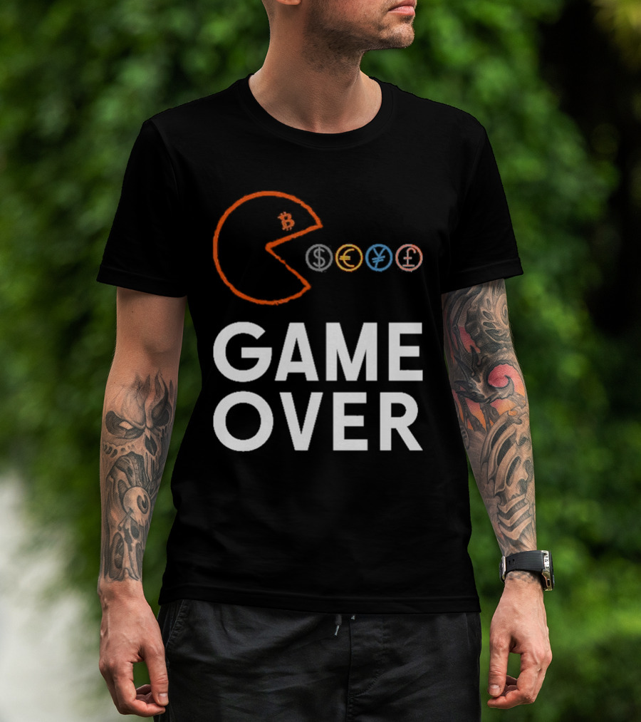 Game Over Bitcoin Pac-Man Eats Dollar Euro Yen Pound T-Shirt
