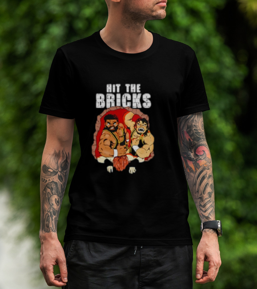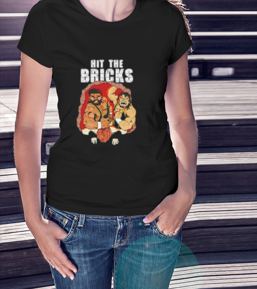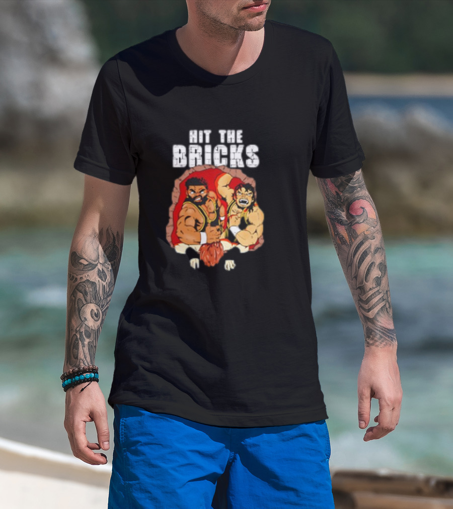 Hit The Bricks Cartoon Wrestlers Breaking Through Wall T-Shirt