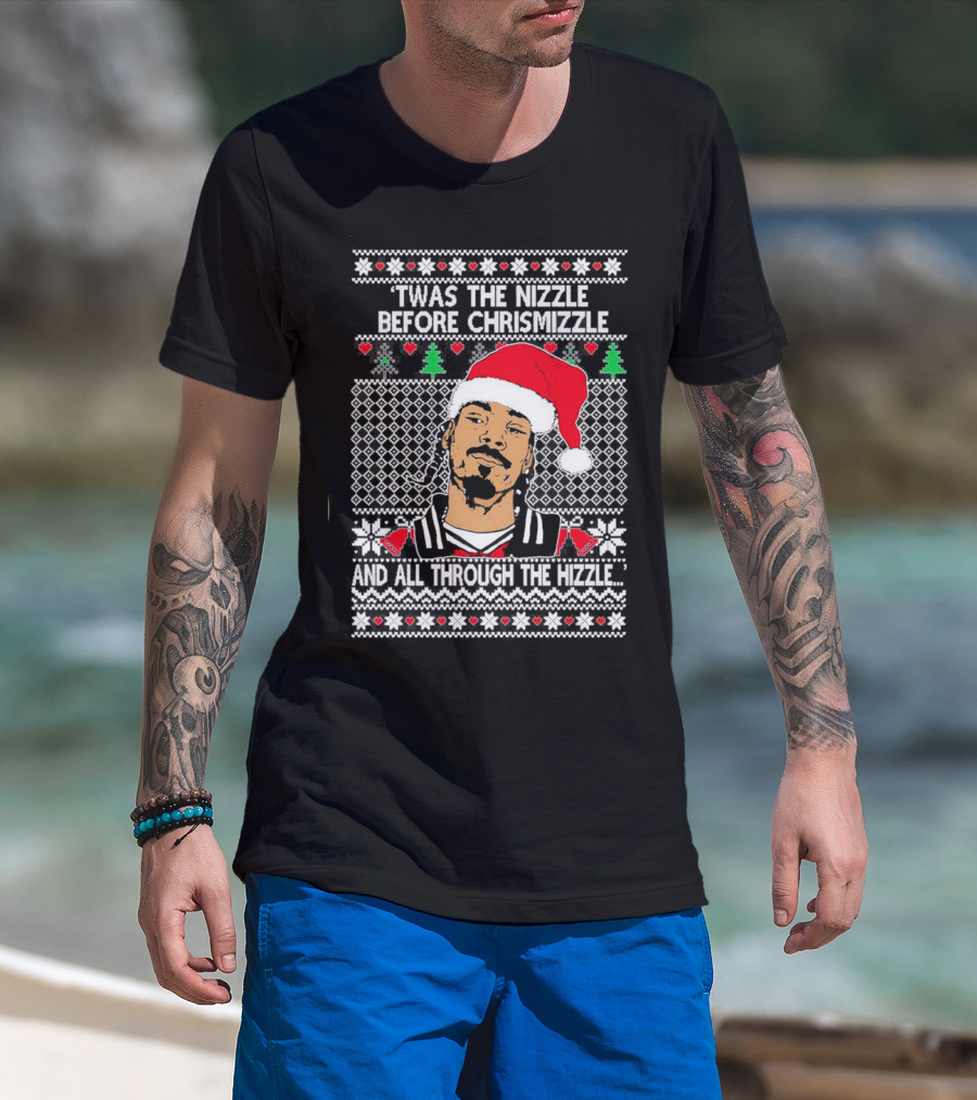 Snoop Dogg Twas The Nizzle Before Chrismizzle Santa Hat Pattern Christmas T-Shirt