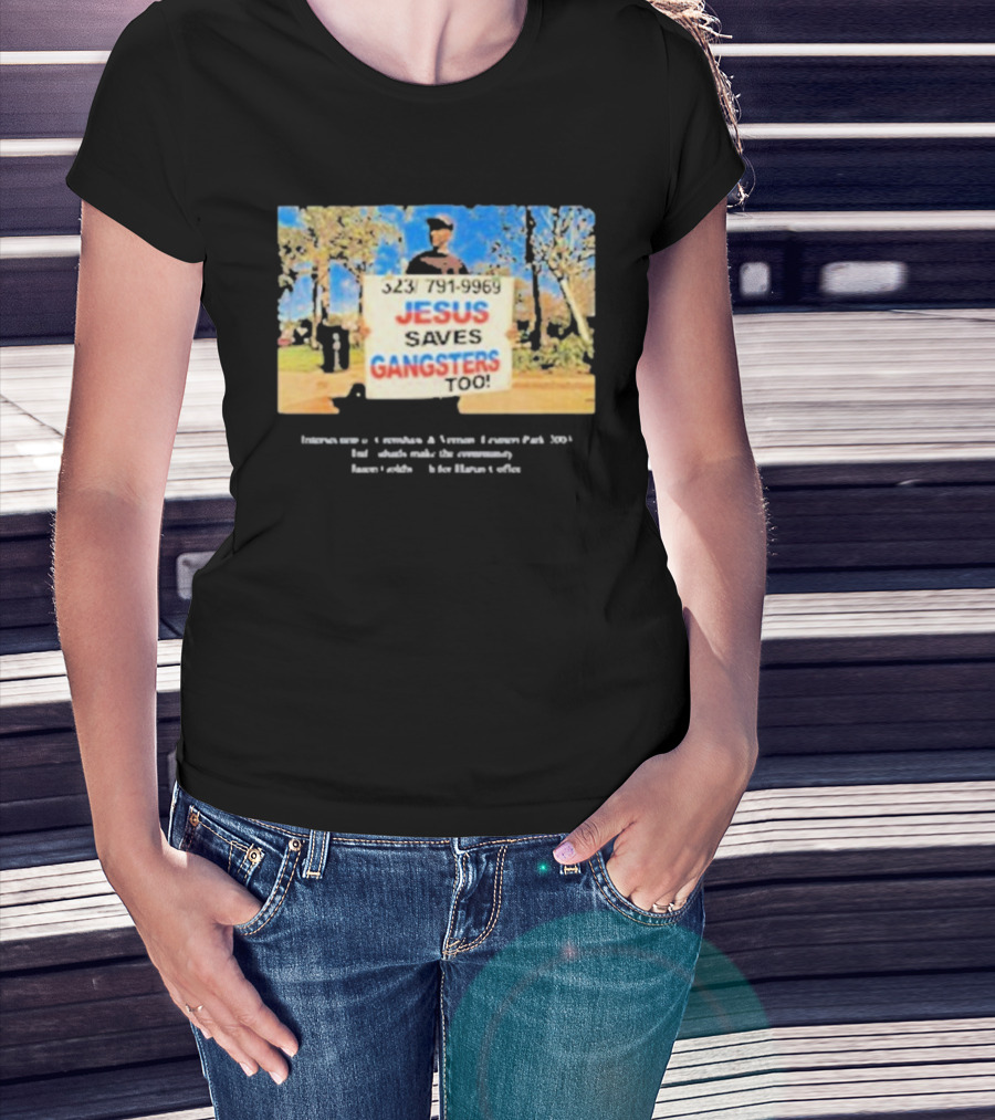 Jesus Saves Gangsters Too 323-791-9969 Crenshaw And Vernon Leimert Park 2003 T-Shirt