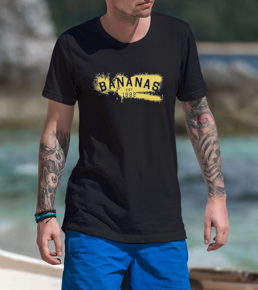 Bananas Est 1982 Vintage Graffiti Style Yellow Brushstroke T-Shirt