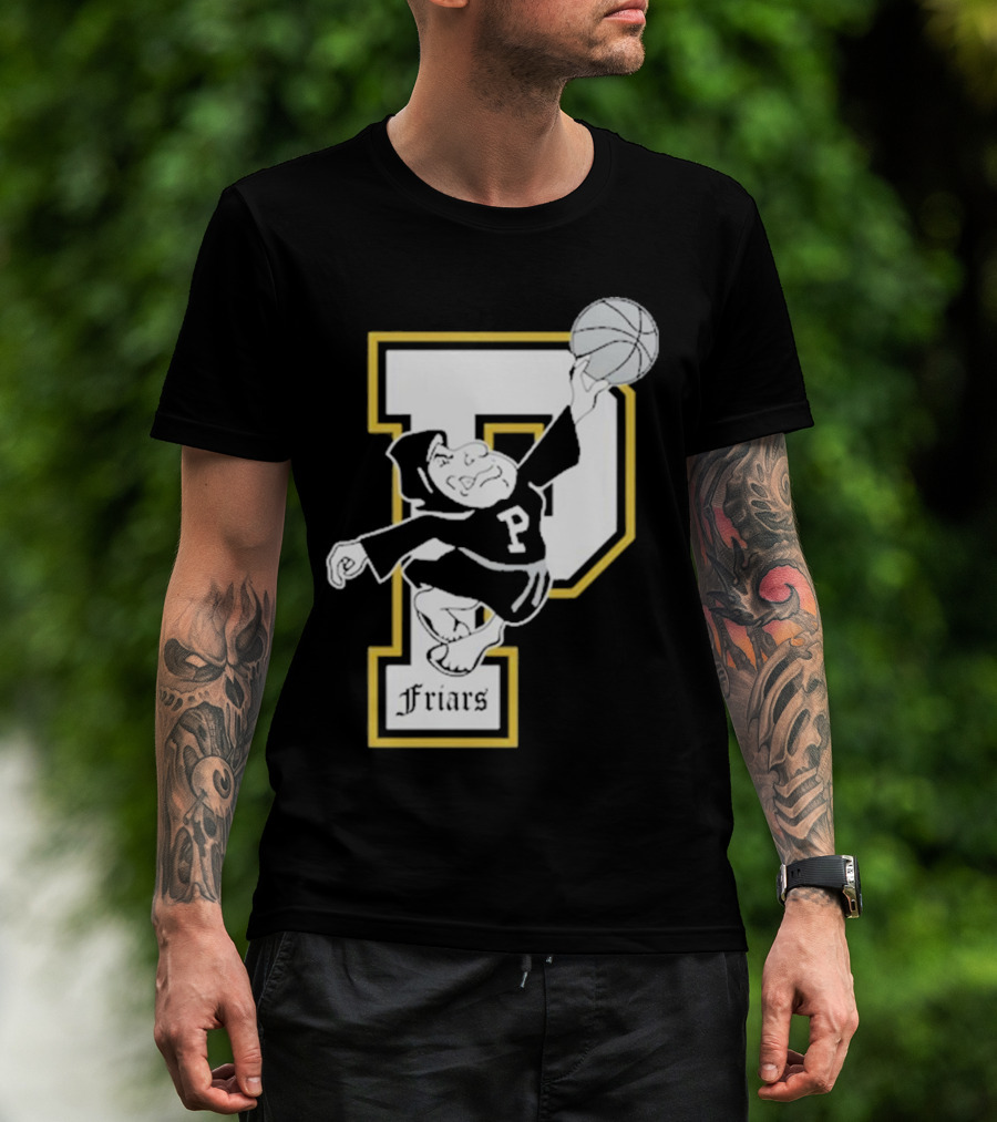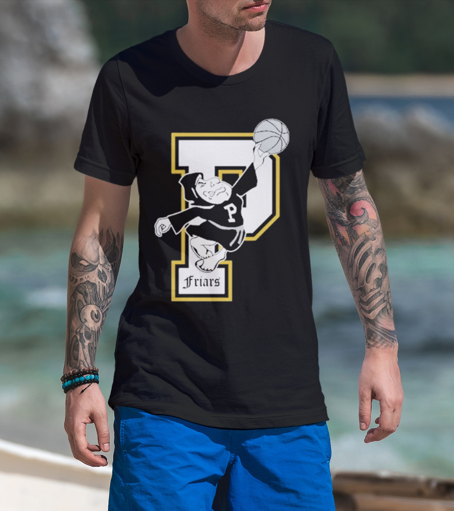 The P Friars Basketball Dunking Mascot T-shirt is designed for everyday wear and a consistent fit. Fabric is pre-shrunk ring-spun cotton with durable stitching. See the size chart below for exact measurements.