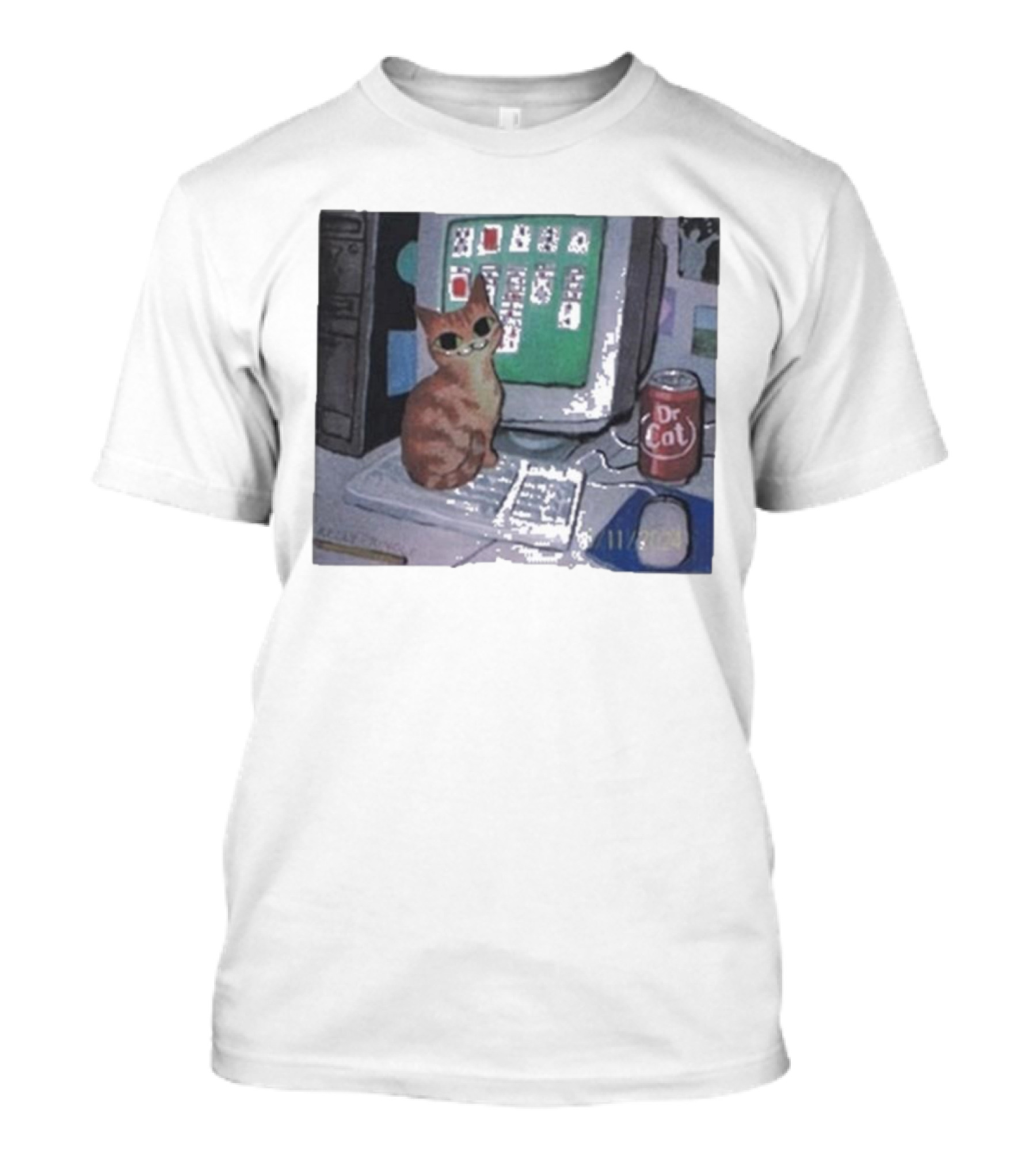 Kelly Pringle Solitaire Cat Dr Cat On Desktop Keyboard T-Shirt
