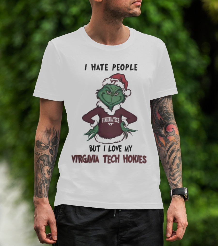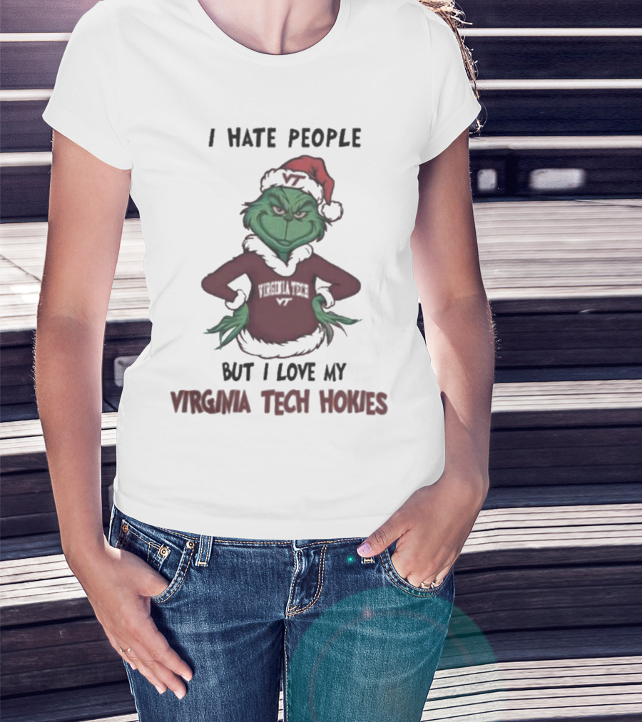 I Hate People But I Love My Virginia Tech Hokies Grinch Xmas T-Shirt
