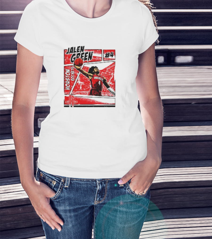 Jalen Green Houston Rockets #4 Comic Style Basketball T-Shirt