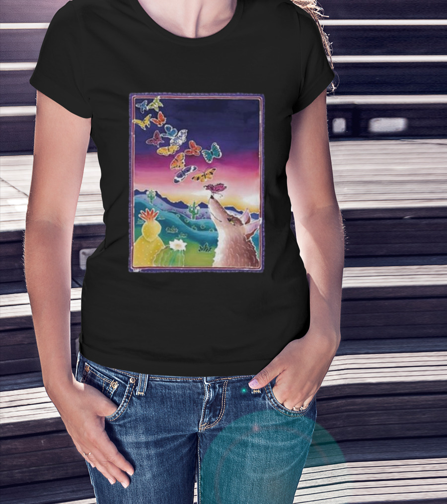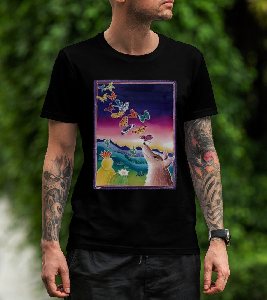 Jimmorris Smiles At Nature’s Wonders Colorful Desert Landscape With Coyote And Butterflies T-Shirt