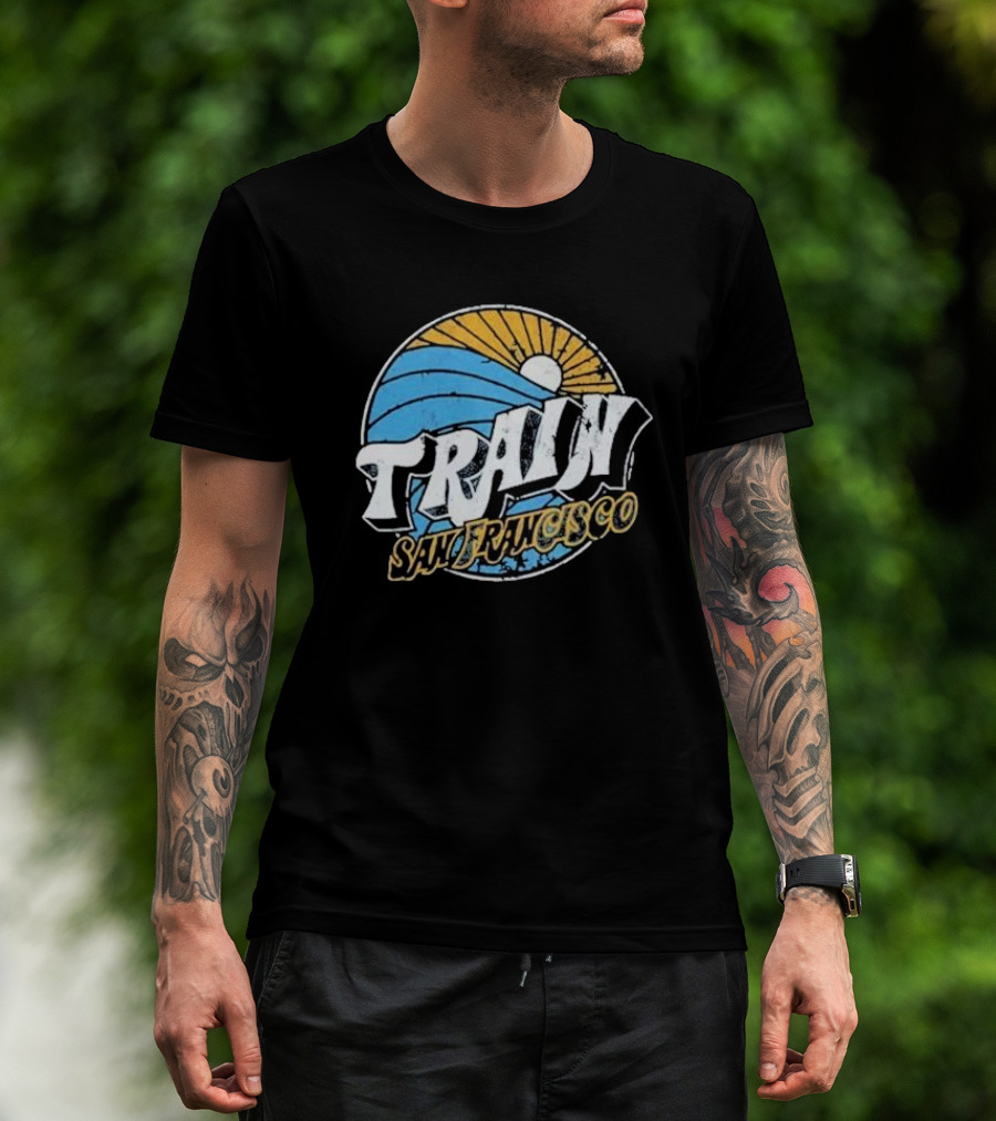 The Train San Francisco Sunset Wave Retro T-shirt is designed for everyday wear and a consistent fit. Fabric is pre-shrunk ring-spun cotton with durable stitching. See the size chart below for exact measurements.