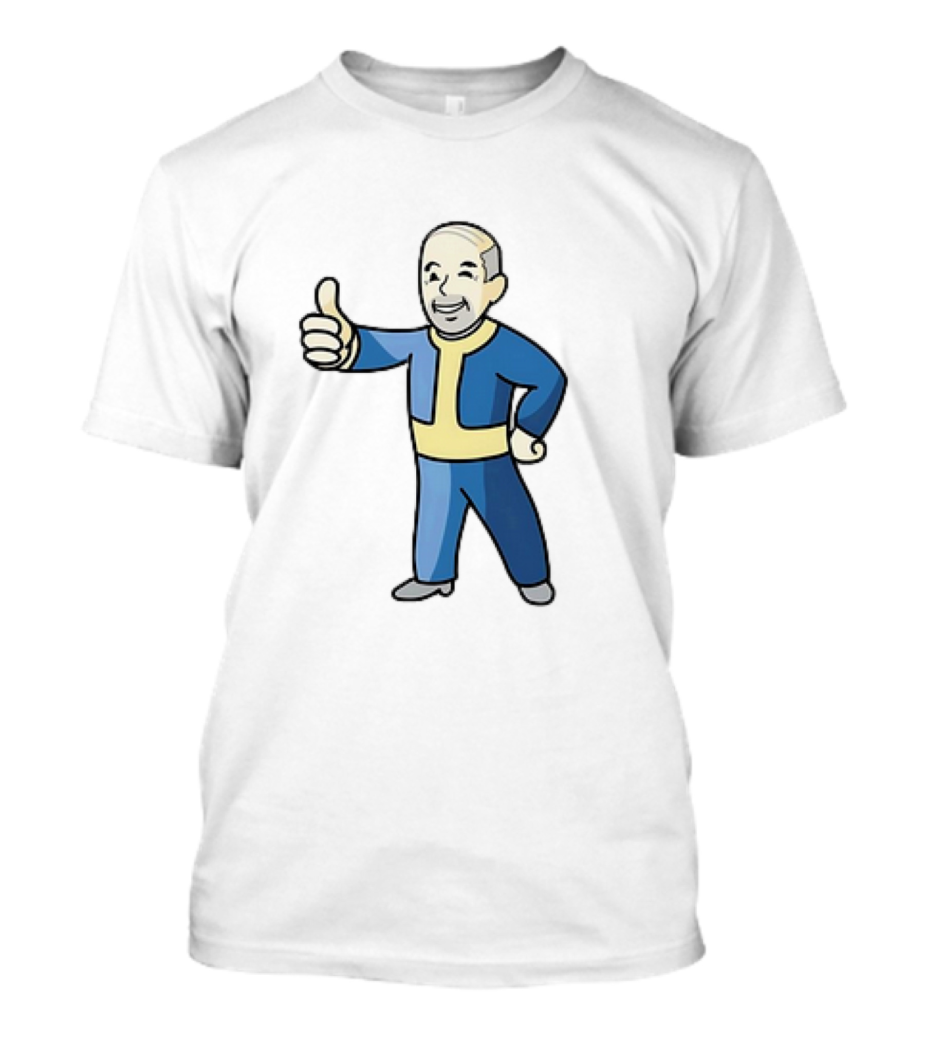 The Vault Nate Fallout Vault Boy Cartoons T-shirt is designed for everyday wear and a consistent fit. Fabric is pre-shrunk ring-spun cotton with durable stitching. See the size chart below for exact measurements.