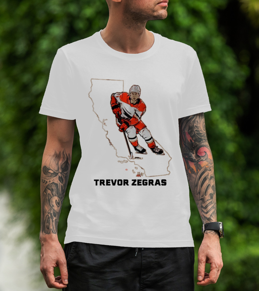 The Trevor Zegras California Hockey Player T-shirt is designed for everyday wear and a consistent fit. Fabric is pre-shrunk ring-spun cotton with durable stitching. See the size chart below for exact measurements.