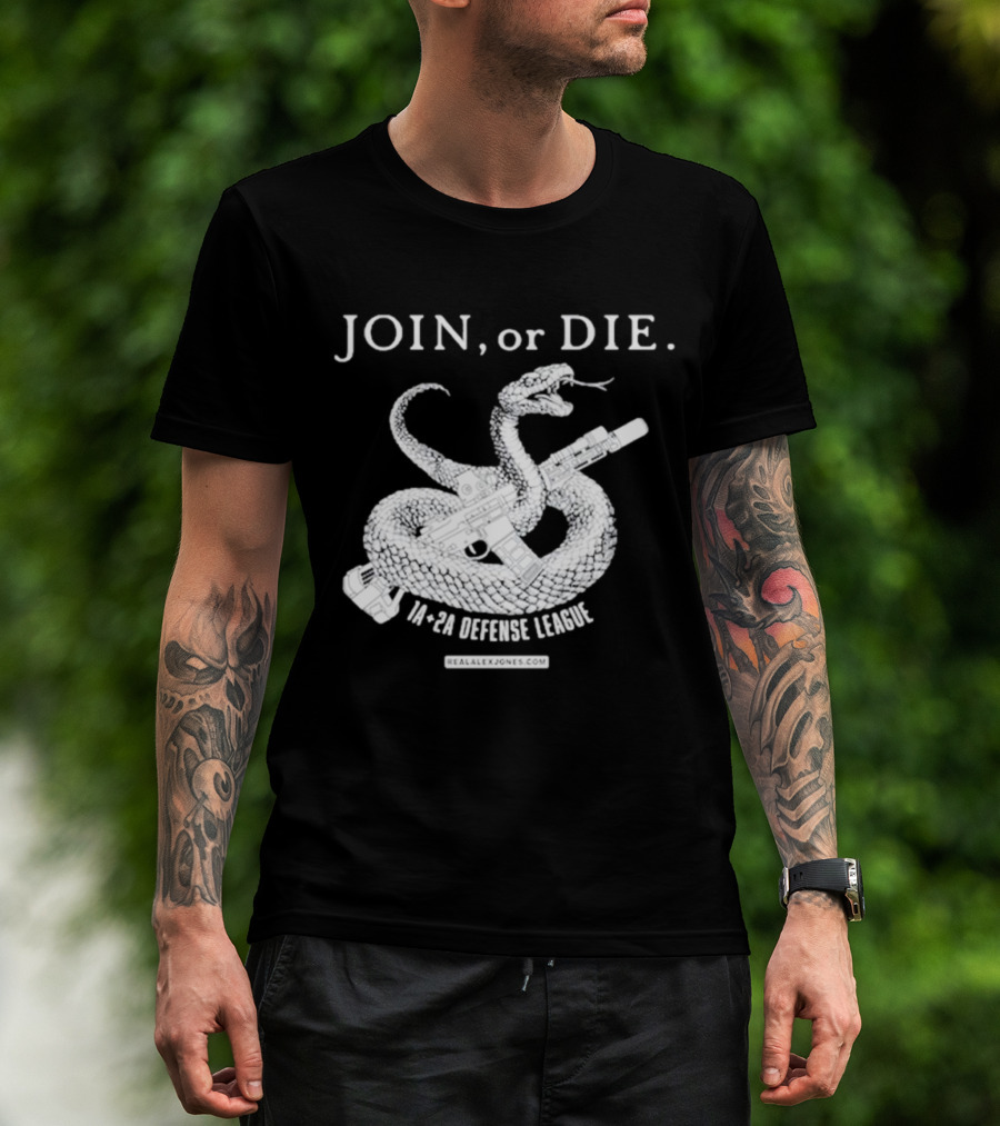 JOIN Or DIE Snake Graphic 1A 2A Defense League RealAlexJones.com T-Shirt