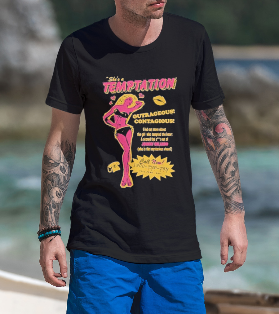 She's A Temptation Outrageous Contagious Call Now 1-900-TMP-T8N T-Shirt