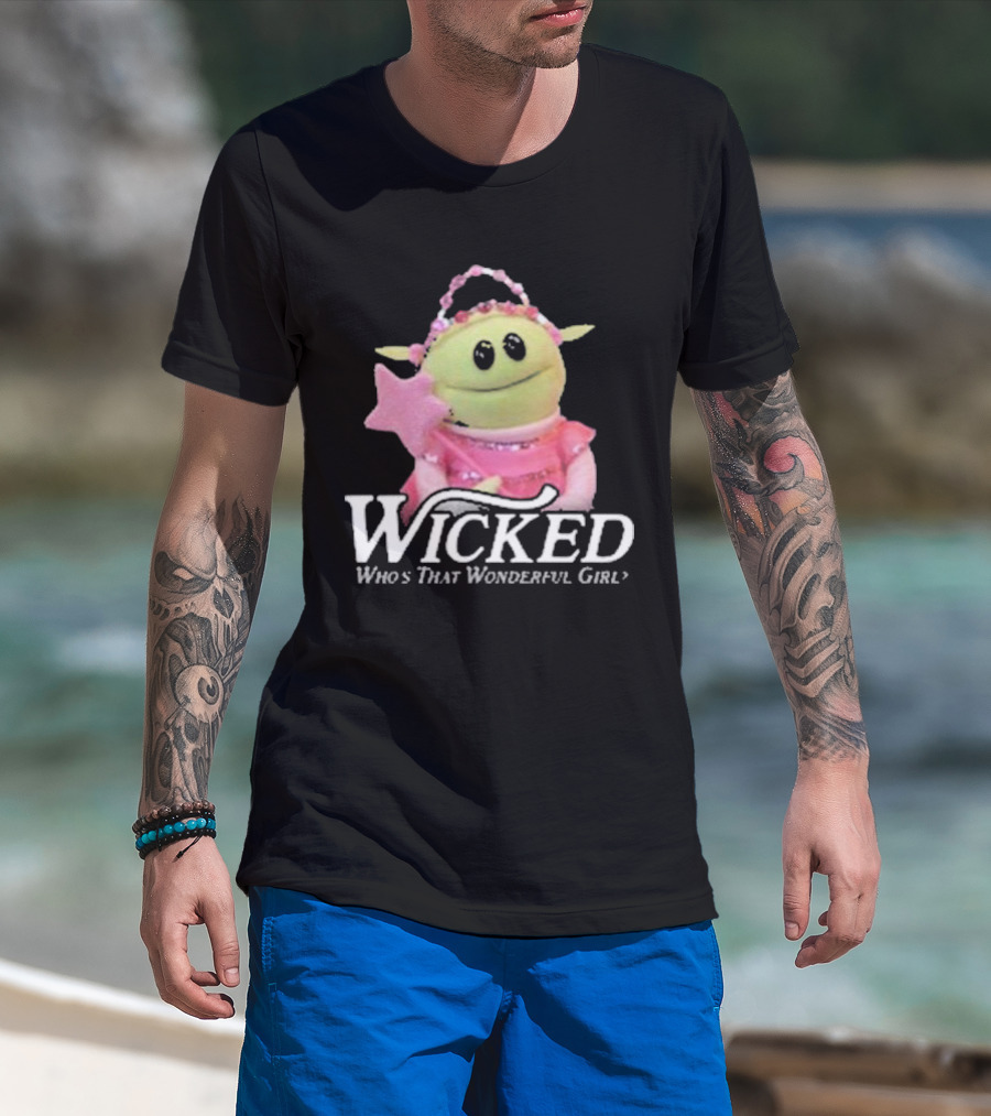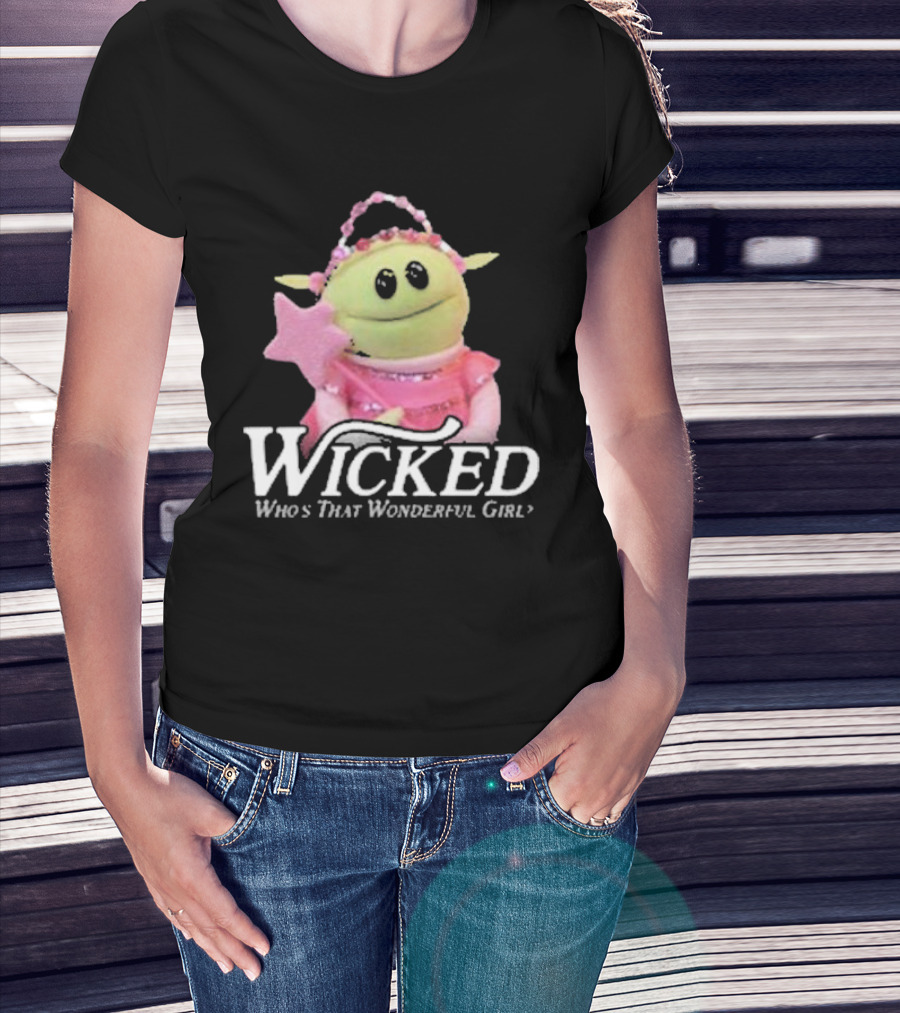 Wicked Who’s That Wonderful Girl Green Alien With Pink Wand And Dress T-Shirt