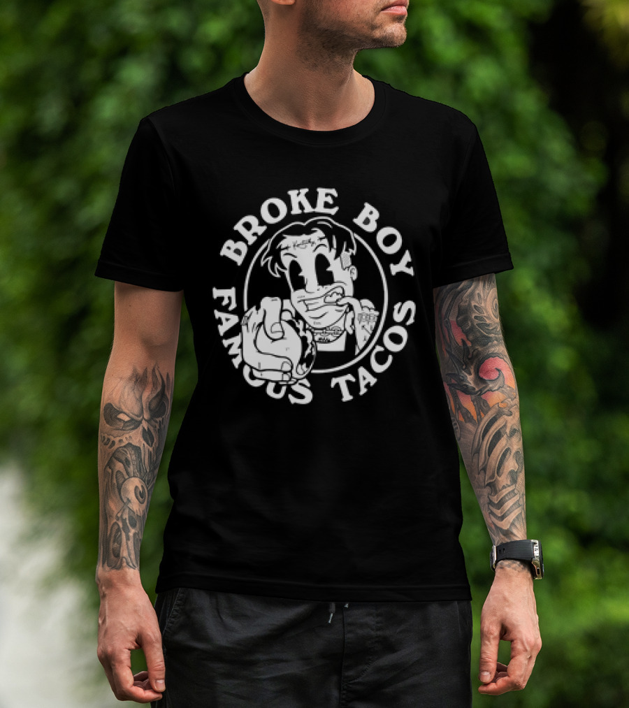 Broke Boy Famous Tacos Comic Character Hand Gesture T-Shirt