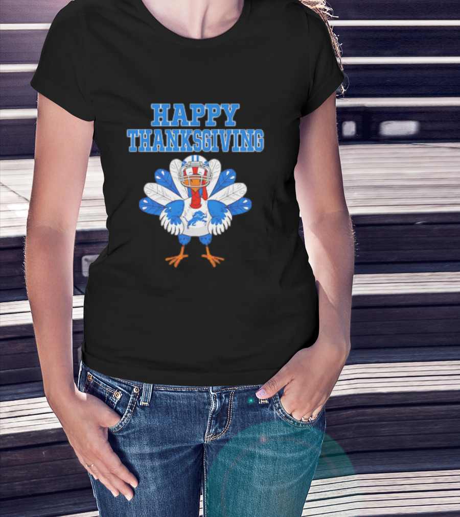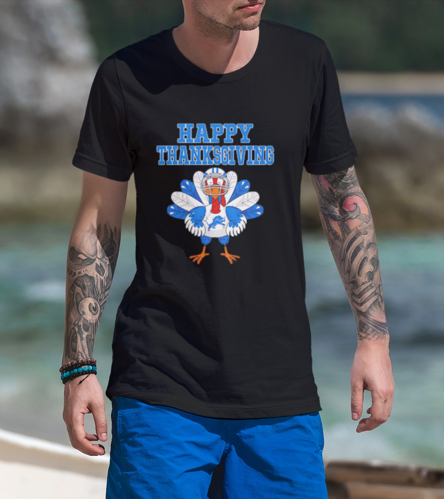 Happy Thanksgiving Detroit Lions Turkey Football Fan T-Shirt