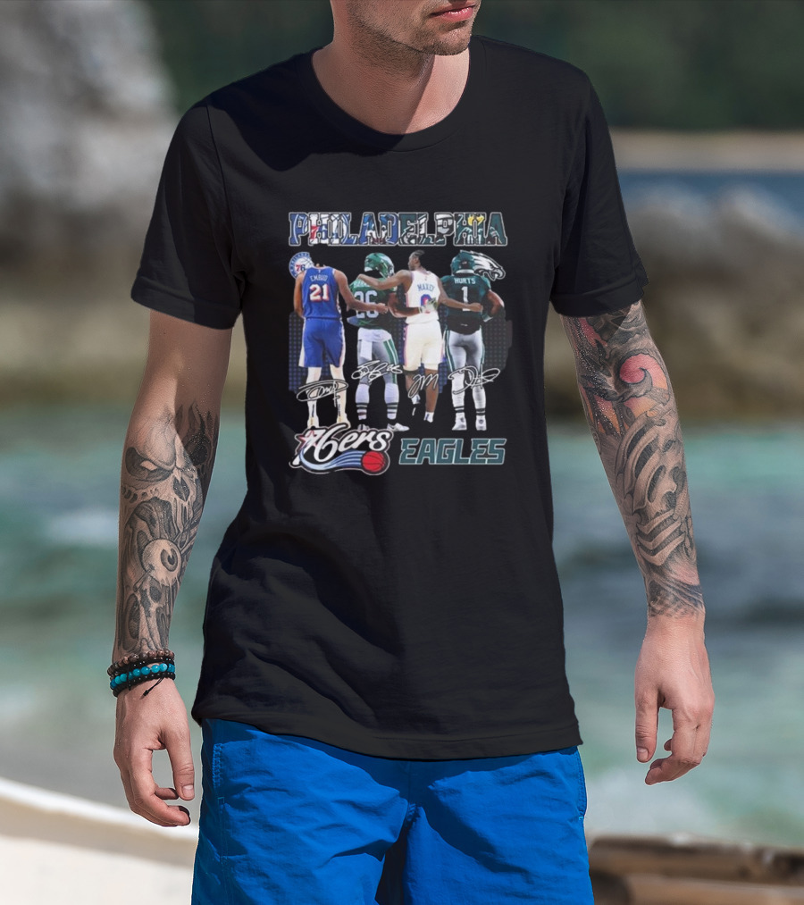 Philadelphia 76ers Joel Embiid And Philadelphia Eagles Sanders Hurts Collaborative Signature T-Shirt