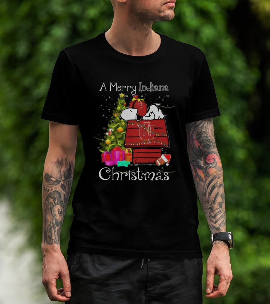 A Merry Indiana Hoosiers Christmas With Snoopy And Woodstock T-Shirt