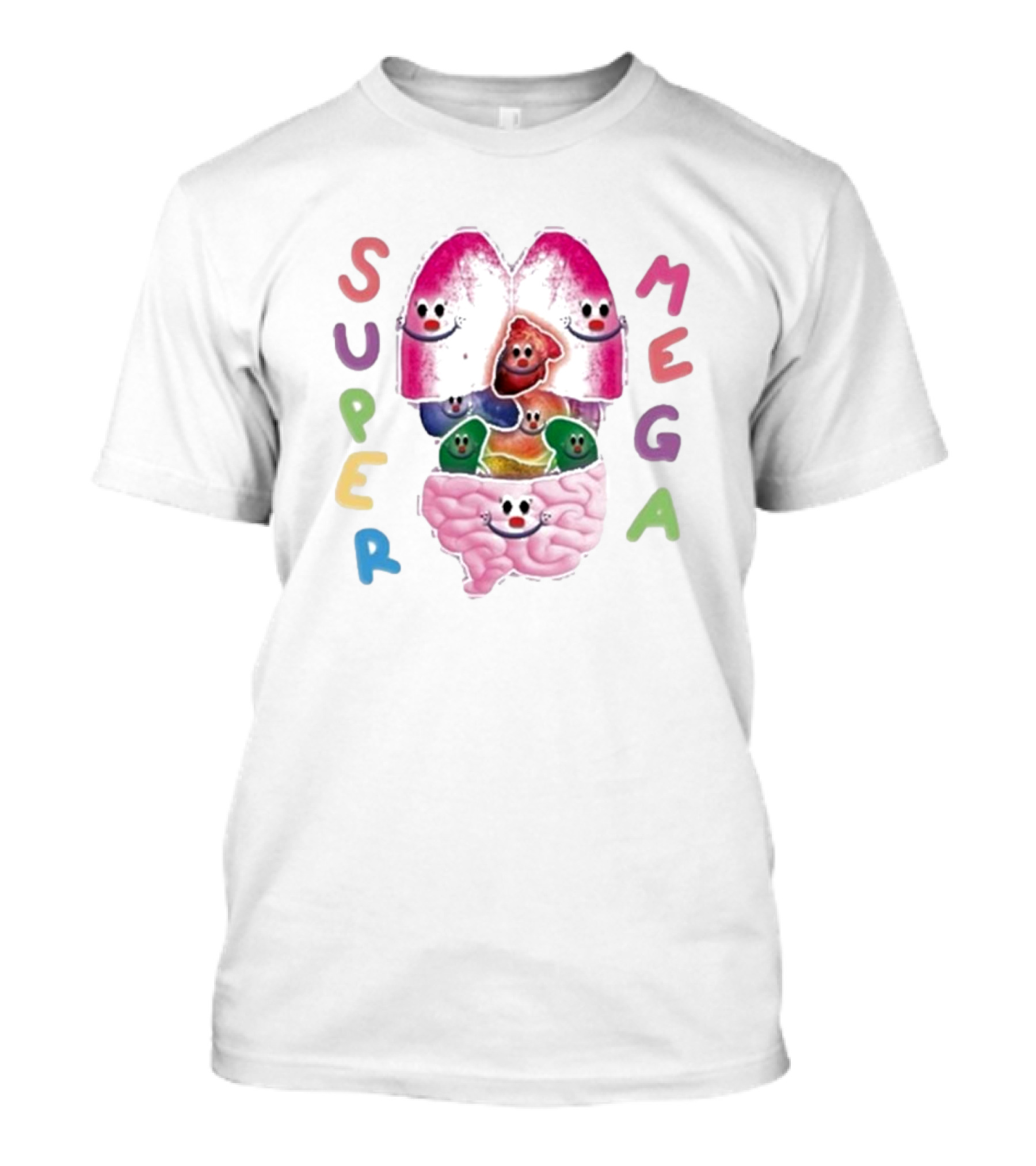 The Super Mega Happy Faces Brain and Lungs T-shirt is designed for everyday wear and a consistent fit. Fabric is pre-shrunk ring-spun cotton with durable stitching. See the size chart below for exact measurements.