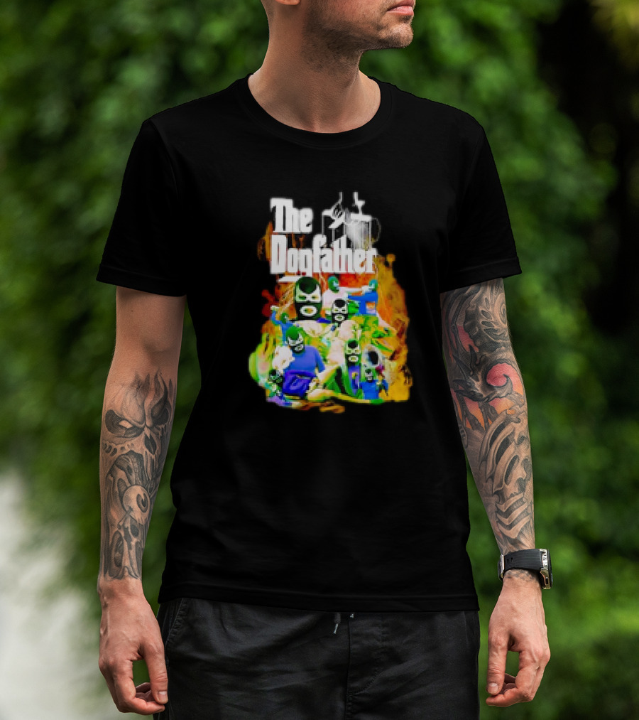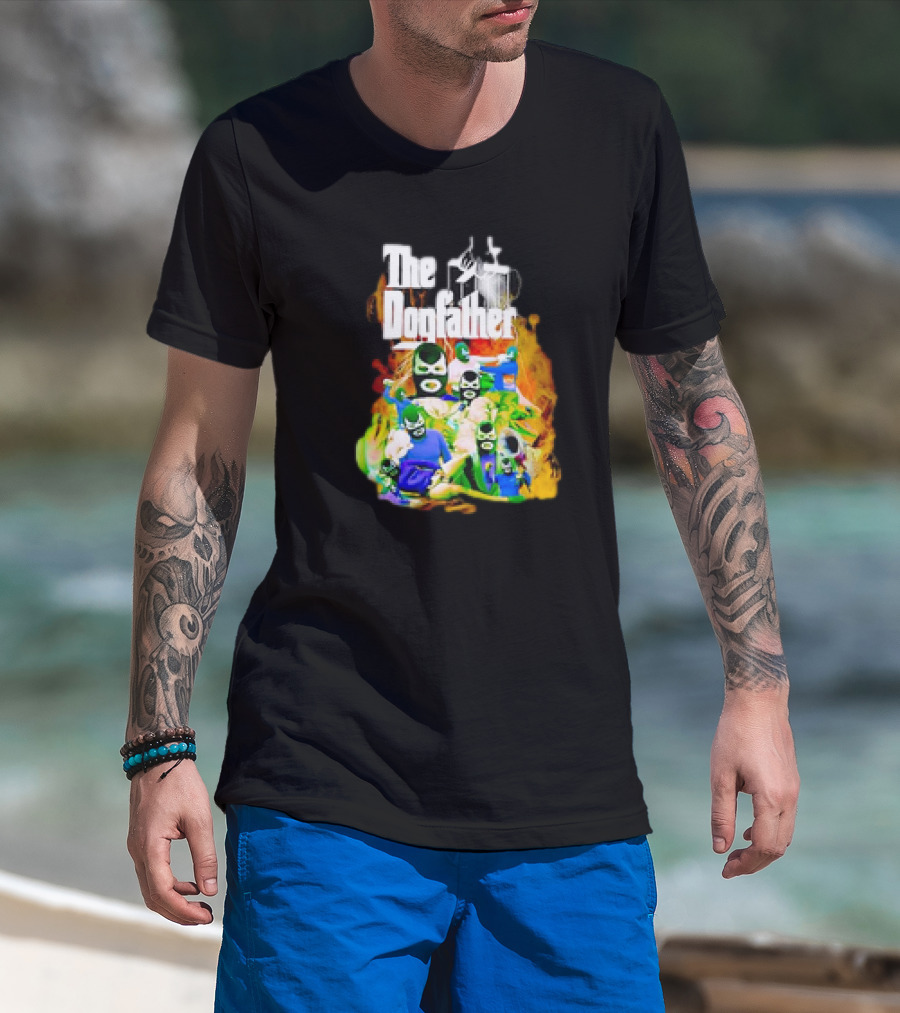 The Dogfather Powerfish Masked Characters In Colorful Scene T-Shirt