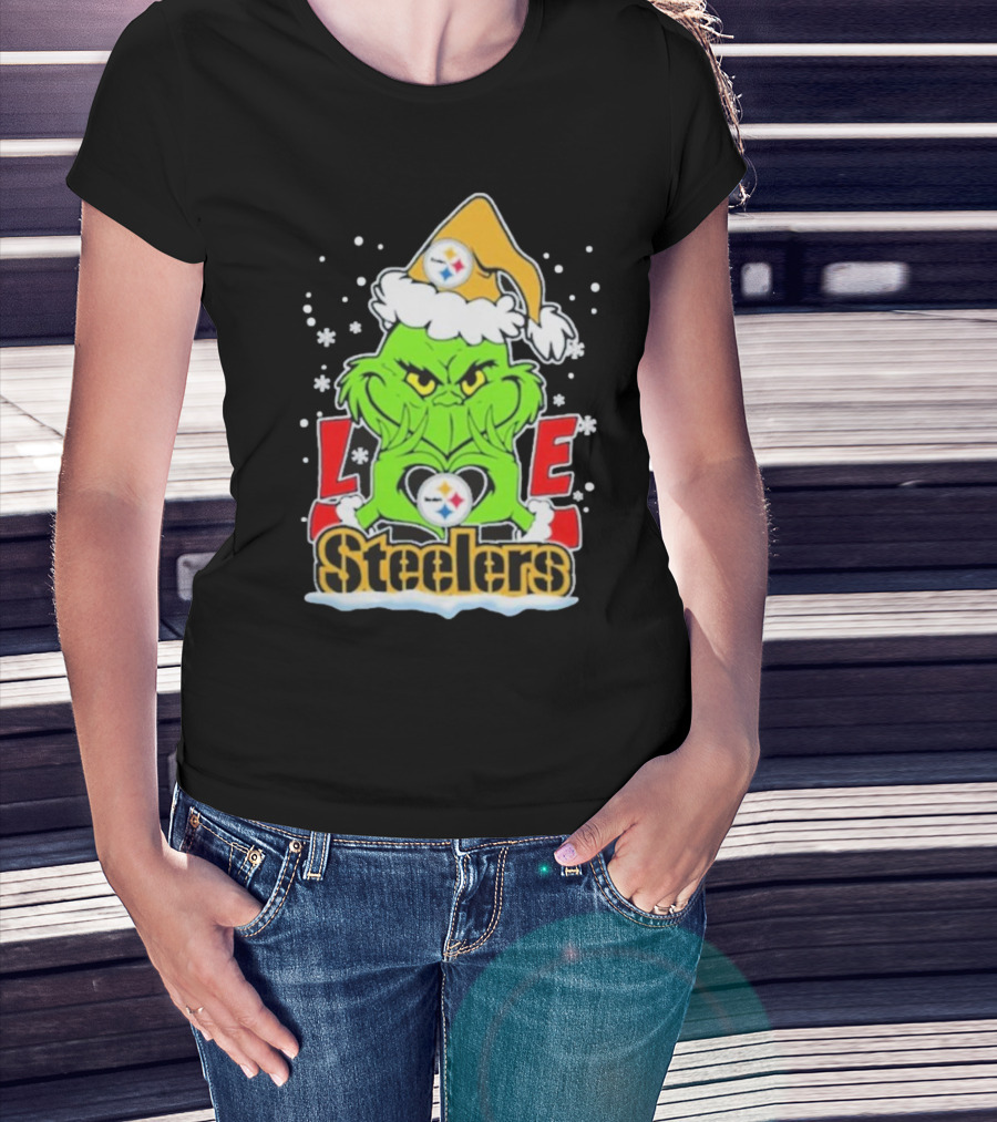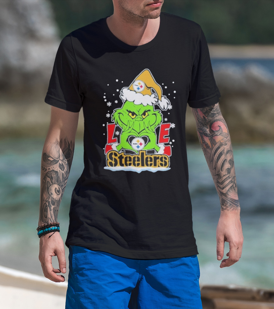 The Grinch Love Steelers Football Christmas T-Shirt