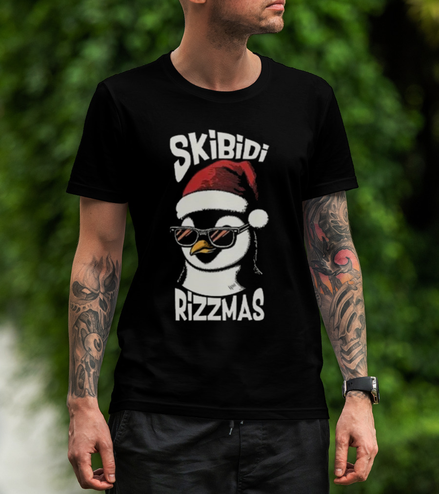 Skibidi Rizzmas Christmas Penguin With Santa Hat And Sunglasses T-Shirt