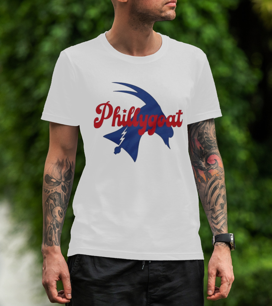 Phillygoat Red Script With Blue Goat And Lightning Bolt Elements T-Shirt