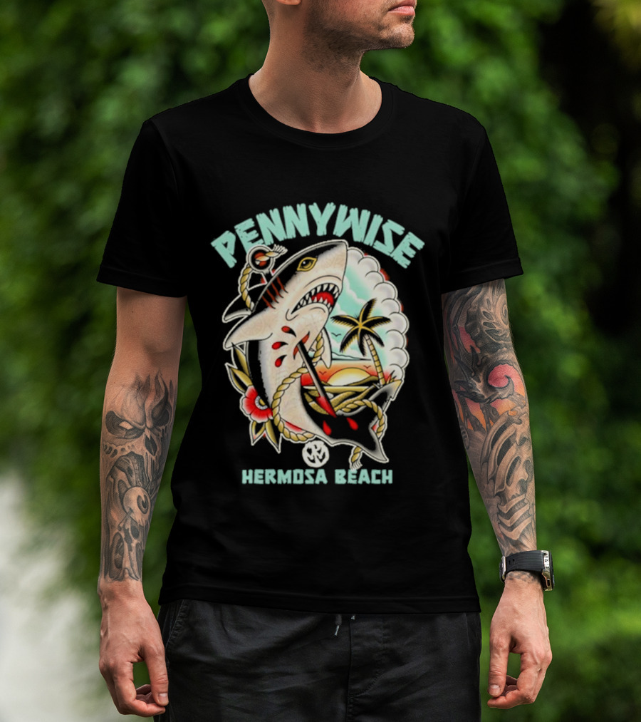 Pennywise Shark Hermosa Beach Sunset Palm Tattoo T-Shirt