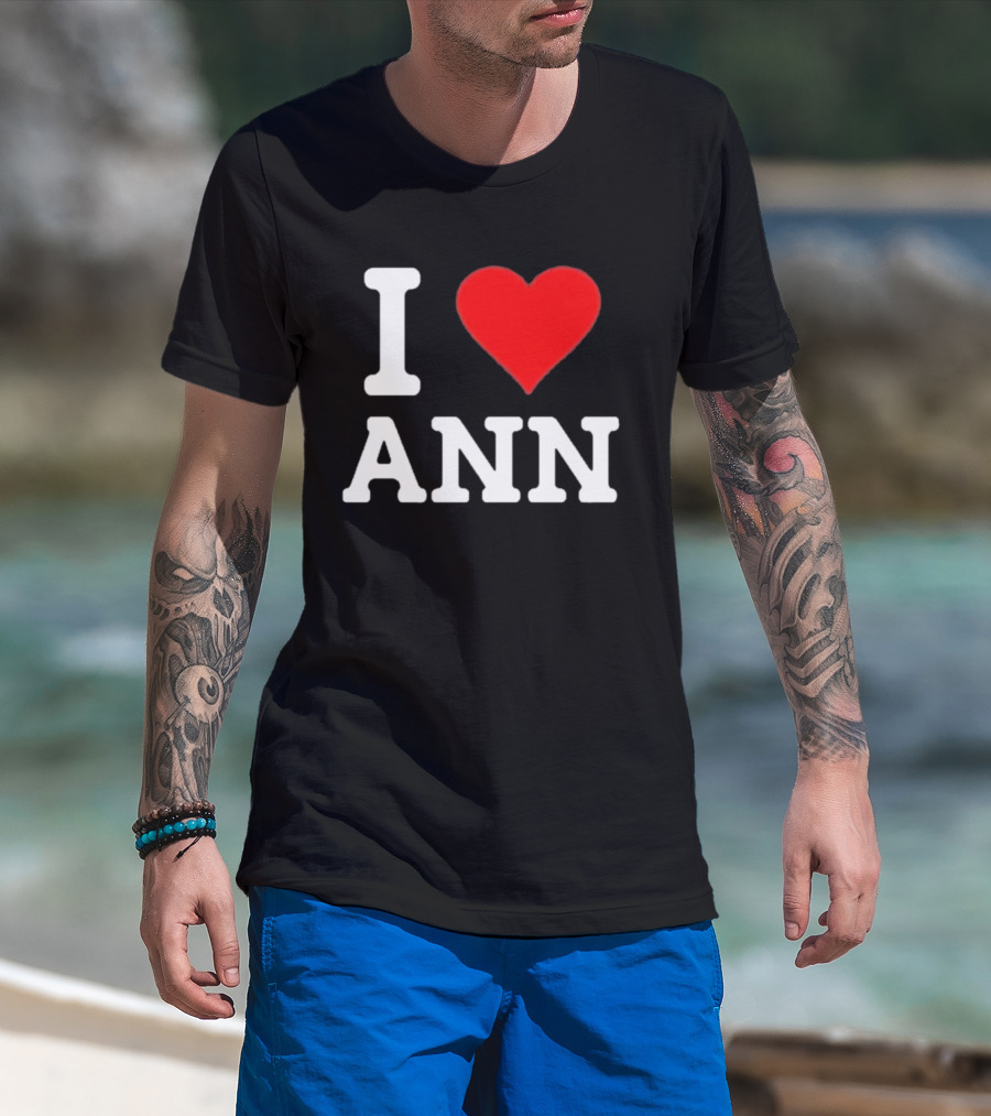 The Family Friendly I Love Ann Heart T-shirt is designed for everyday wear and a consistent fit. Fabric is pre-shrunk ring-spun cotton with durable stitching. See the size chart below for exact measurements.