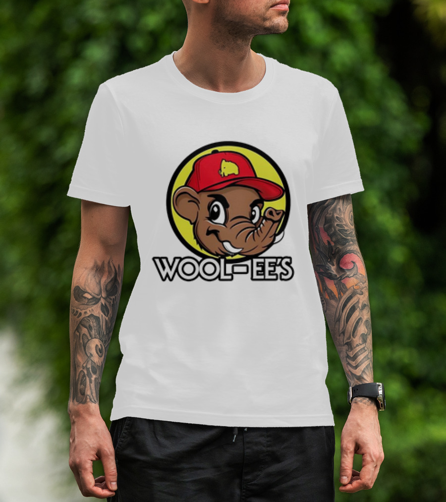 Wool-Ee’s Woolly Mammoth Cartoon Character In Red Cap With Yellow Background T-Shirt